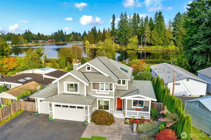 Exquisite 2014 Lake Loma retreat! 2 luxurious primary suites, main-floor office with Murphy bed, & versatile craft room. Nestled on a ½-acre lot with private dock, vibrant fruit trees, & blueberry bushes. Enjoy a cozy lakefront fire-pit by a serene, electric-motor-only lake, perfect for year-round fishing. Newly refinished decks, plumbed for gas BBQ & wired for hot tub, enhance outdoor living. RV parking with 220 hookups & generator. Stunning open kitchen with granite counters, above-cabinet lighting, walk-in pantry w/coffee bar, flowing into a warm family room with fireplace, surround sound, & custom shelves. Elegant crown molding, wainscoting, & deck off primary suite & hallway. Tranquil, wildlife-rich community with friendly neighbors.