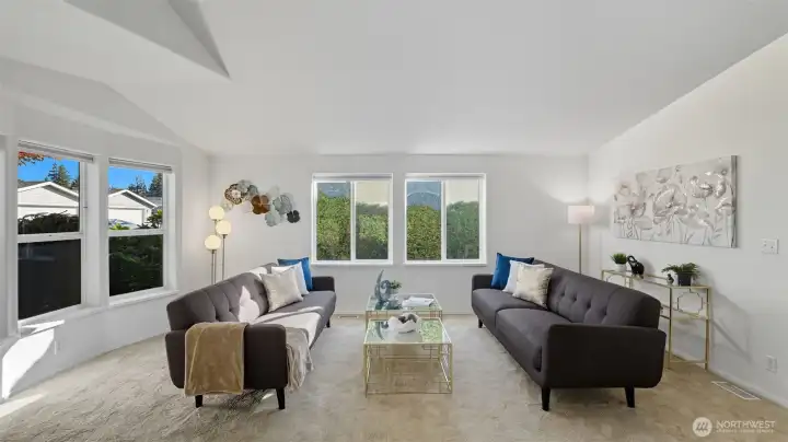 Located near the clubhouse in one of the most desirable areas of Water Gardens, Maple Valley’s premier 55+ gated community surrounded by ponds, waterfalls, and landscaped gardens. This beautifully maintained 1,950 sq ft single-level home offers newer luxury vinyl plank flooring, fresh interior paint, vaulted ceilings, and skylights that fill the home with natural light. The kitchen includes abundant cabinetry, a dining area, and a built-in desk. The spacious primary suite features a walk-in closet, soaking tub, and separate shower with accessibility upgrades including grab bars and handheld wand. A gas furnace with central A/C & heat pump ensures year-round comfort. Enjoy the clubhouse, walking paths, and RV parking. Pre-inspected!