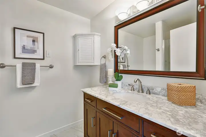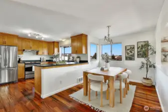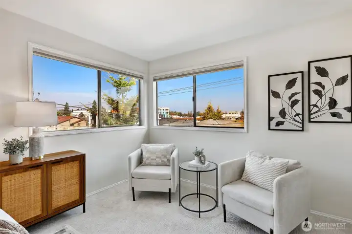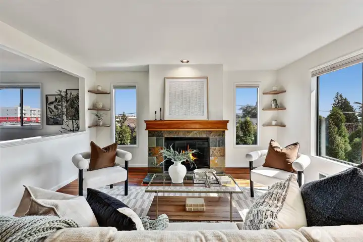 Top-floor sophistication meets Greenwood convenience in this spacious 2-bedroom condo with timeless updates and direct access to outdoor living. Hardwood floors, a stately fireplace, abundant natural light, and mountain views set the scene in the open-concept great room. Retreat to a generous primary suite with walk-in closet and remodeled bath, or step outside to a private deck that flows to a fully fenced yard—ideal for entertaining, gardening, or pets. Plentiful storage throughout, in-unit laundry, and a private garage add everyday ease, while no rental or pet restrictions provide long-term flexibility in a private, tucked-away setting near Greenwood’s parks, cafes, and shops. Ask about the .25% lender-paid discount to buydown your rate!