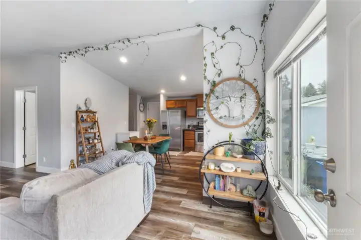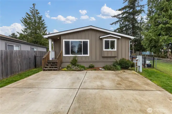 The one you’ve been waiting for! Tucked at the end of a quiet cul-de-sac, this 2017 home brings all the home-sweet-home vibes. Enjoy upgraded floors, stainless appliances and big bright windows that fill every room with natural light. Plant lovers, your indoor jungle will thrive here! The open layout connects a spacious kitchen for your inner chef. Private primary suite, private bath-double vanity, shower walk-in closet. Gazebo, garden and a fenced yard ready for BBQs, pets, or play. Leased land $975/month — lot maintained by resident. One of the best homes in the community. Close to shopping, schools, parks and fantastic for commuters! Affordable in King County, a must see!