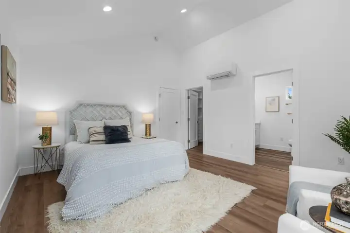 Discover this stunning 3BR, 2.25BA home featuring an open-concept kitchen with a stylish horseshoe island, perfect for entertaining. Vaulted ceilings add elegance, and mini-splits in each bedroom ensure year-round comfort. The primary bathroom features heated floors for a touch of luxury. Enjoy a fully fenced, generous front yard with off-street parking that can accommodate up to three midsize cars. Ideally located near a top-rated school (98% math, 97% reading) and just blocks from a Kiddie Academy. The rear unit (998 sq ft) sold for $775,000; 2 of 3 new construction homes remain. Prime location—don’t miss out!