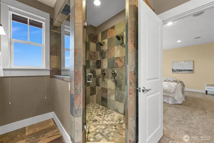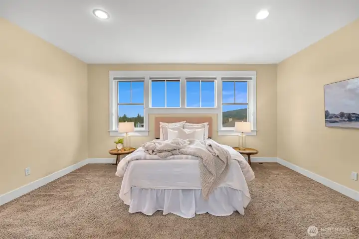 Come see this stunning Geveva home overlooking Lake Whatcom & the mountains with over 5000 sqft!Main areas on one level include gourmet kitchen with commercial grade appliances and amazing lake views,formal dining room w/butler's pantry,large great room w/fireplace shared by partially covered composite deck-perfect for entertaining,master suite w/walk-in closet and full bath with radiant floor heating,additional bed w/full bath.Lower level boasts huge rec room with 3 more bedrooms/2 baths,large covered patio,Extra features include central vac,on-demand hot water,oversized 2 car garage with EV charger,professionally terraced patio,air conditioning,newer hot tub(2022),newer generator(2023),and sprinkler system.This home has it all!