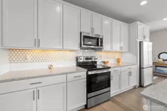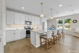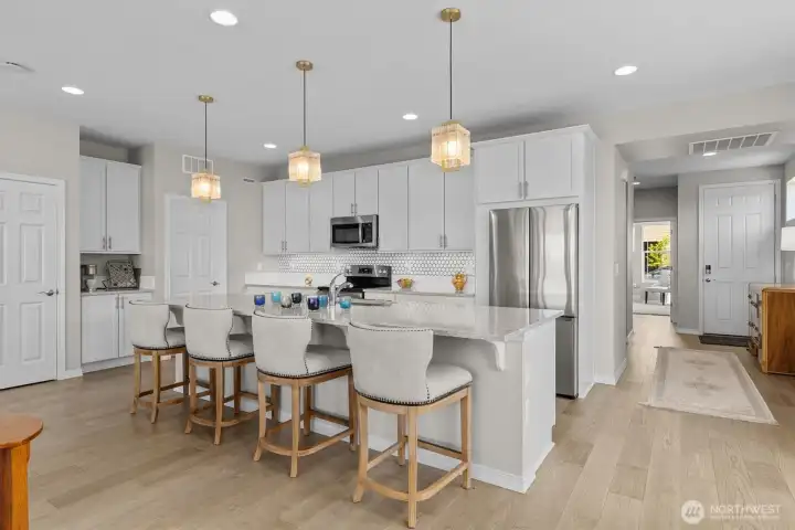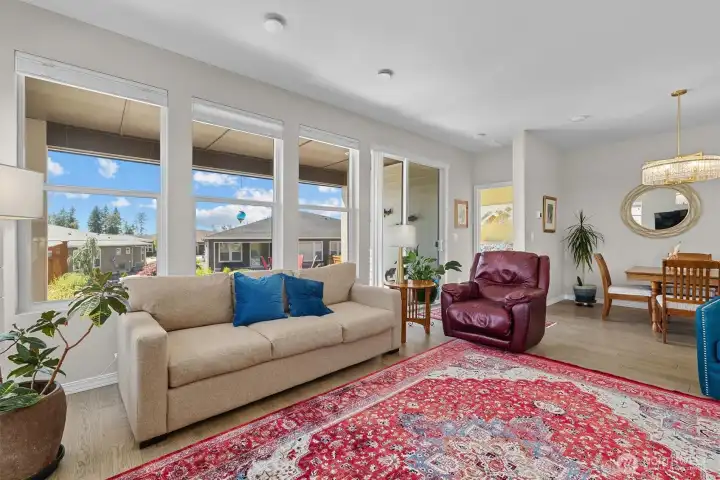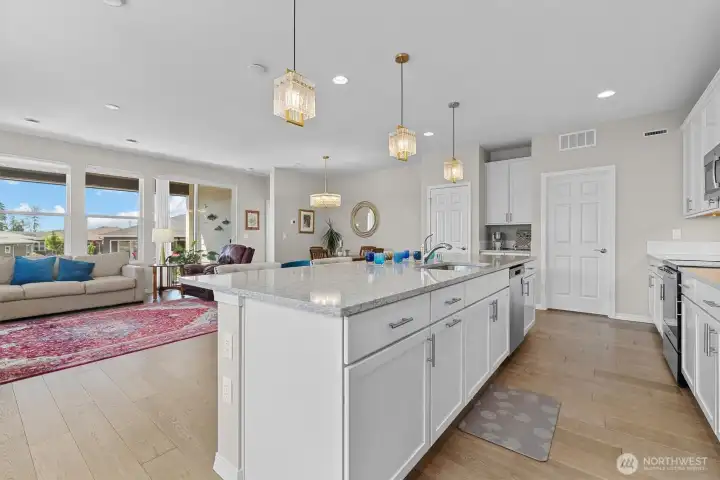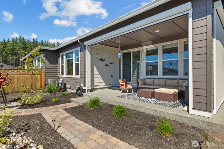 WOW 5% price reduction! The home is vacant and ready for you to move in! A beautifully designed open-concept 2 Bedroom, 1.75bathroom rambler, offering both style and functionality within a 55+ community. Natural light fills the very spacious Great room, dining area, and kitchen, creating a bright atmosphere. The heart of the home is the oversized island, perfect for entertaining. Retreat to the private primary suite featuring a generous walk-in closet and a double sink vanity in the primary bathroom. Step outside to a covered patio with a privacy screen; overlooking a beautiful waterfall and fully landscaped backyard with an additional landscaped side yard. Enjoy the Trilogy activities, amenities and trails.