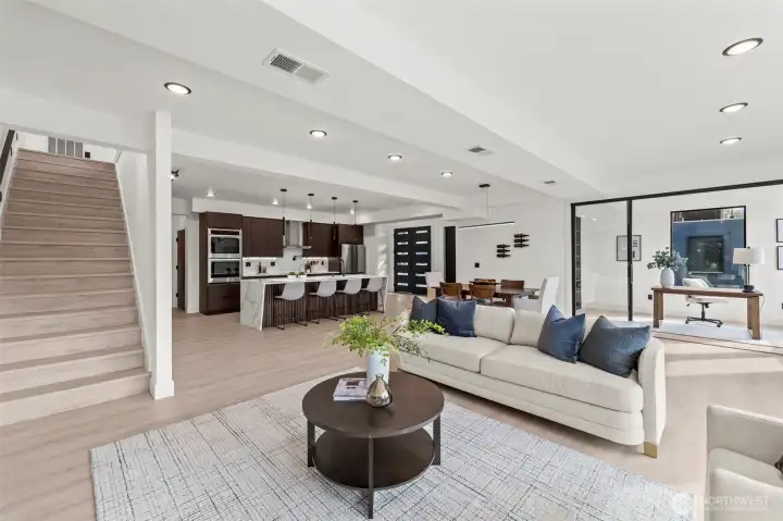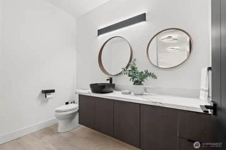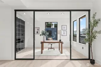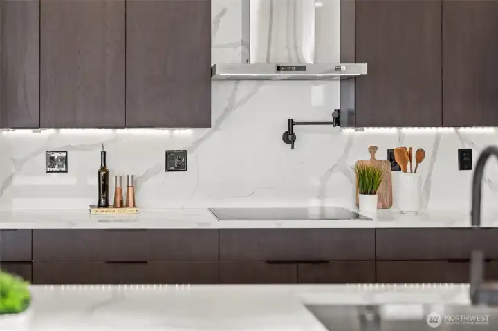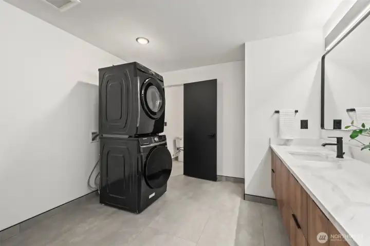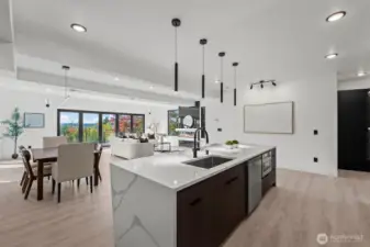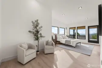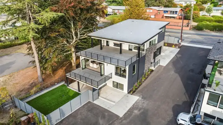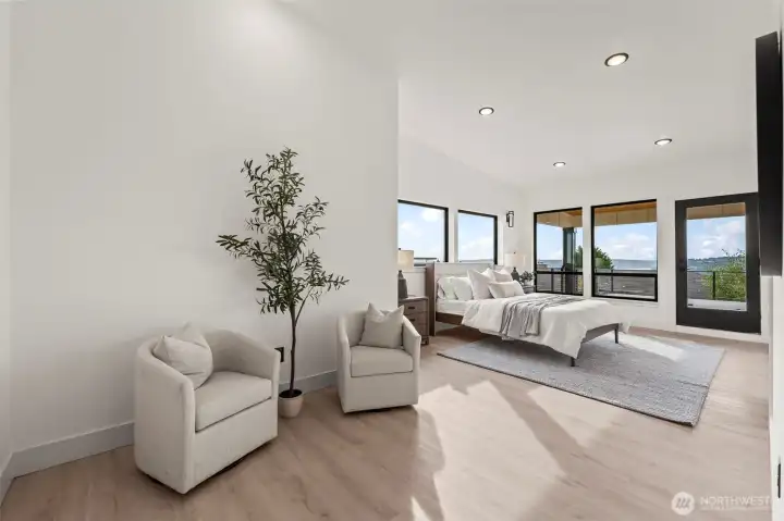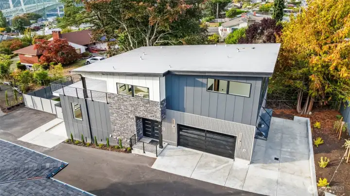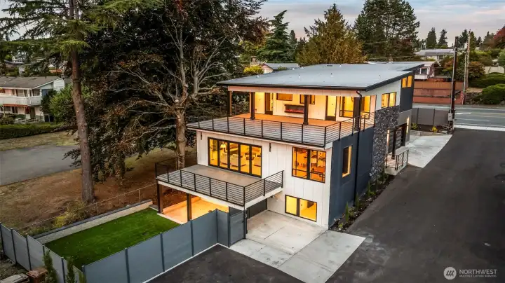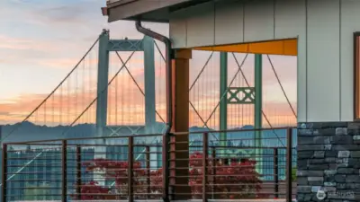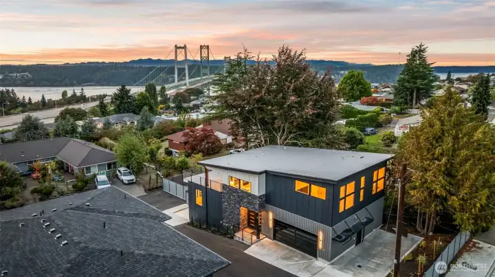 Modern new construction in North Tacoma offering 3898 sq ft of refined living w/ captivating views of the Narrows Bridge and Puget Sound. Open-concept design with a waterfall quartz island, office, expansive custom doors that blend indoor-outdoor living. 3 bedrooms, 2 baths include a primary suite with a rain shower & soaking tub, covered deck off primary offers an outdoor fireplace and is plumbed for a kitchen. The 1,167 sq ft ADU includes 2 bdrm, a flex room, full kitchen, bath, laundry, and separate entry—ideal for multi-gen living or income potential. LVP flooring, pantry w/ custom Murphy door, electric fireplaces w/ambience options. Fully fenced yard w/ turf, 2 EV chargers, 2 car-gar + xtra parking, & much more! 2-10 Warranty.