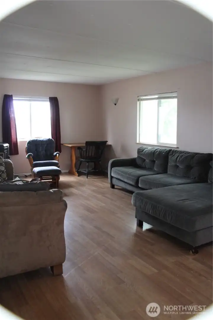 Beautifully maintained doublewide located in the welcoming, all-ages community of Harvest Manor! This home features nicely updated kitchen and living spaces with laminate wood flooring, a spacious living room open to the dining area, and plenty of natural light. Enjoy the convenience of the included appliances washer, dryer, freezer, refrigerator, oven, microwave, garbage disposal, and dishwasher. The level lot offers mature landscaping, two secure storage sheds behind the home, and additional community storage available for boats, RVs, and more. Ideally located close to the park, clubhouse, and pool, his home is move-in ready and ready for its next owners.