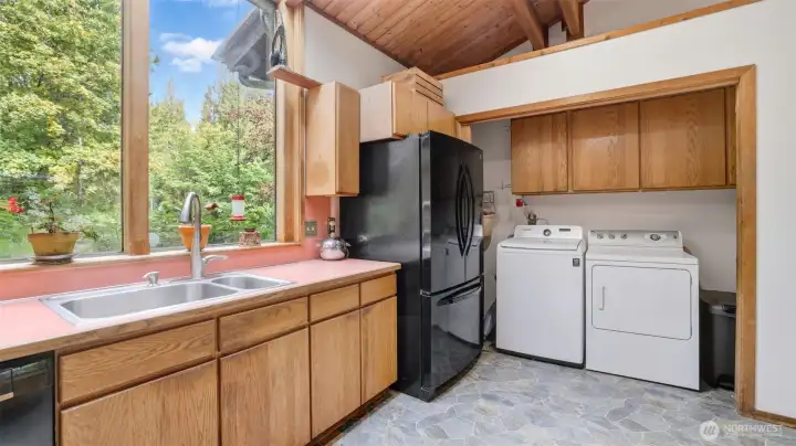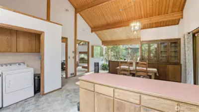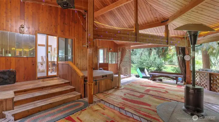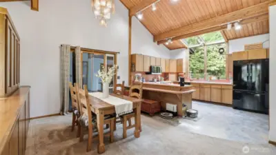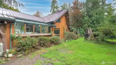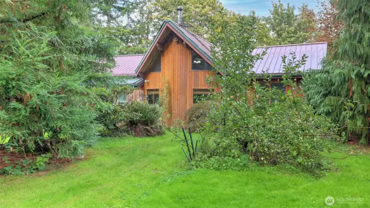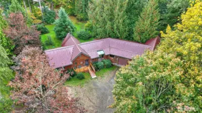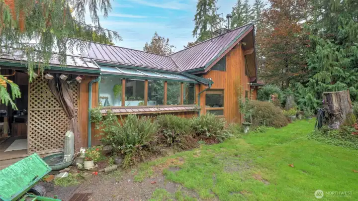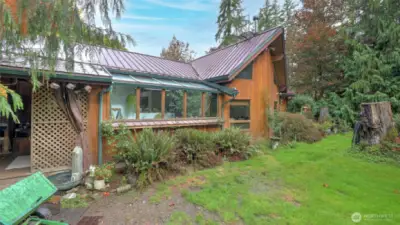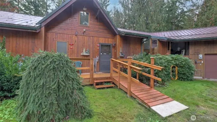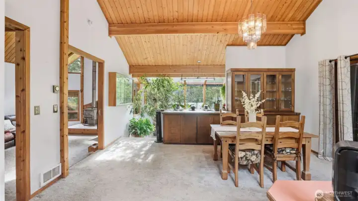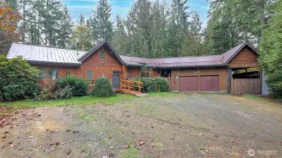 Welcome to Enumclaw! This cozy two-bedroom, one-bath (1/2 bath in garage) Lindal Cedar Home is situated on a spacious 37,796 sq ft level lot. Enjoy an enormous, covered party deck, perfect for entertaining, & a spacious 3 car garage with RV Bay & huge storage room above garage. Vaulted wood ceilings throughout with exposed beams, & a cozy wood-burning fireplace that heats the entire home. Solarium overlooking backyard, built-in desk and buffet. Outbuildings w/potting shed that has running water & bunkhouse/playhouse. Cold room w/heater for canned goods. Metal roof. New carpet prior to closing. Minutes to downtown Enumclaw & walk to Nolte State Park & Fish Lake. Adjacent property listing #2392300 for income potential.