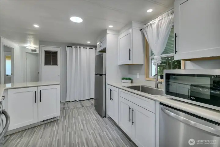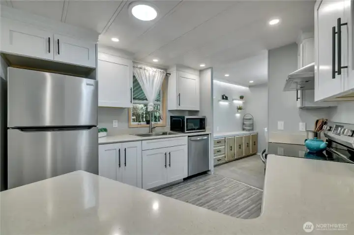 Step into refined comfort in this beautifully updated home in the prestigious Leisure Estates 55+ community in desirable Renton Highlands! The elegant kitchen showcases quartz countertops, newer stainless steel appliances & designer lighting. Spacious living area features new carpet and a modern, inviting feel throughout. The primary suite offers a private bath with a walk-in shower. A new roof adds peace of mind, while the large storage shed and expansive two-car side-by-side carport provide convenience and functionality. Enjoy resort-style living with a clubhouse featuring a party room, pool table, and exercise room. Relax in the pool, sauna, hot tub, or stay active with pickleball, tennis, golf, and a dog park. Welcome to your new HOME!
