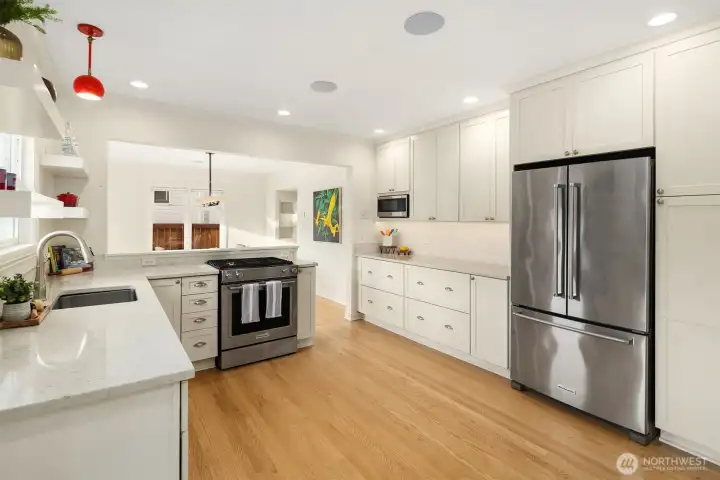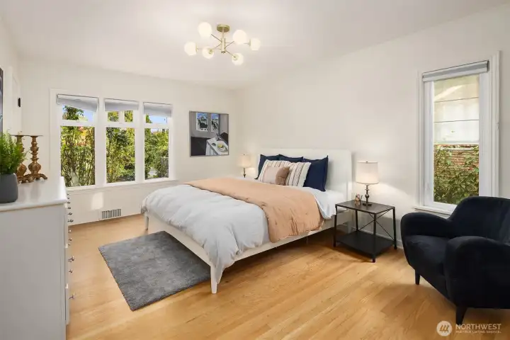 Set in the heart of Mt Baker on a large lot, this timeless brick home combines a smart floor plan & modern updates with warmth & character. Light fills the main level, where impressively sized living areas include a bay-windowed living room with fireplace, an elegant dining space & a sleek kitchen with breakfast nook, premium appliances, soft-close cabinetry & garden views. Step outside to a covered outdoor living room with a gas fireplace for all year outdoor fun, surrounded by rose-filled gardens offering privacy & beauty, plus a low maintenance turf lawn in front. Downstairs features a finished rec room with wet bar, guest suite & laundry. Two-car garage & private drive. Moments from chic coffee shops, Lake Washington & Mt Baker Park.