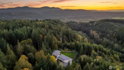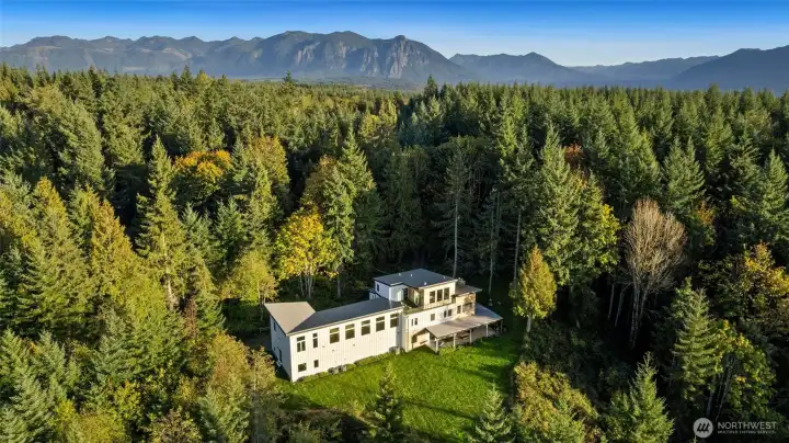 Experience the luxury and tranquility of Northwest living in this 2020 contemporary estate offering 4,120 sq ft on 11 serene acres. Designed for modern living, the great room showcases an 18-ft DaVinci stone fireplace, walls of windows, and seamless flow to the 1,200-sq-ft covered patio with gas BBQ hookup and outdoor heater connections. The chef’s kitchen features an 8-burner stove, oversized quartz island, real hardwood cabinetry, and a butler’s area. The third-floor primary suite captures sweeping mountain views and offers a wet bar with mini fridge, and a spa-like 5-piece ensuite with dual showers. 4-car garage, ample parking, and 2,400 sq ft of unfinished space ready for your vision to complete this exceptional Fall City retreat.