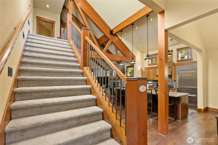 Located in the coveted Prospector’s Reach neighborhood, this mountain retreat places you within minutes of it all - the Suncadia Social, Lodge, Swim & Fitness Center, restaurants, trails, and more! Thoughtfully maintained, the home features an open layout with vaulted ceilings, stone accents, and rich millwork throughout. A primary ensuite on the main level is joined by an upstairs ensuite and newly added built-in bunk beds to maximize space and rental potential. Enjoy your private hot tub, covered patio with BBQ, and heated garage-turned-game room. Recent upgrades include wide plank hardwood flooring and an EV charger. Fully furnished for immediate enjoyment or holiday rental income.