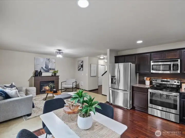 Welcome to the beautifully tree-lined community of Steven's Crossing located within the coveted Lake Stevens School District boundaries! This home boasts 3 beds, 2.5 baths, & is ready for its new owner! Inviting, open-concept floor plan with the kitchen, dining, & living room (with cozy gas fireplace) smoothly flowing together. Primary bedroom has a spacious walk-in closet & dual vanity in the attached full bath. Two secondary bedrooms, another full bath, & utility space completes the upstairs. Fenced backyard + large deck for entertaining. This property backs to protected habitat space for serene privacy & natural scenery. HOA dues only $120 per quarter. Conveniently located - Close to schools, shopping, restaurants, parks, trails, & more!