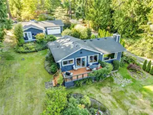 Opportunity Knocks! Enjoy sweeping views of Puget Sound & the Cascade Mountains from every room. Lg windows draw in natural light & open onto an expansive entertainment deckâperfect for gatherings or quiet evening sunsets. Gourmet kitchen features a serving bar, SS appliances, & plenty of counters. Just off the living room is a versatile study/office. The property also includes separate detached flex space for future Mother IL plans. Impressive 25' x 46' garage/shop offers abundant space for projects, storage, or creative endeavors, a hobbyist dream! The surrounding yard is filled with mature landscaping, vibrant flower gardens, creating a peaceful retreat. Minutes to adorable downtown, Edmonds & Seattle ferries, restaurants, shops, & more.