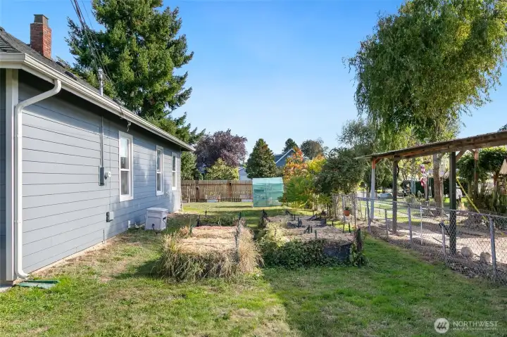 Brimming with natural light, this beautifully updated home shines inside and out! Enjoy peace of mind with a roof under 10 years old, new James Hardie siding (20-year warranty), and a complete crawlspace renovation with new trusses, pillars, insulation, and vapor barrier. Modern upgrades include a new breaker box, outdoor electrical plugs, and new bedroom flooring. All rooms feature fresh paint or primer. The home also boasts a 6-camera security system, multiple raised garden beds with irrigation, and a fully furnished chicken coop—ready for your backyard homestead! Plus, new washer, dryer, and fridge make this move-in ready gem a rare find.