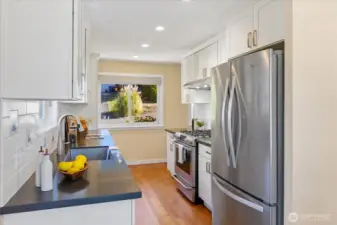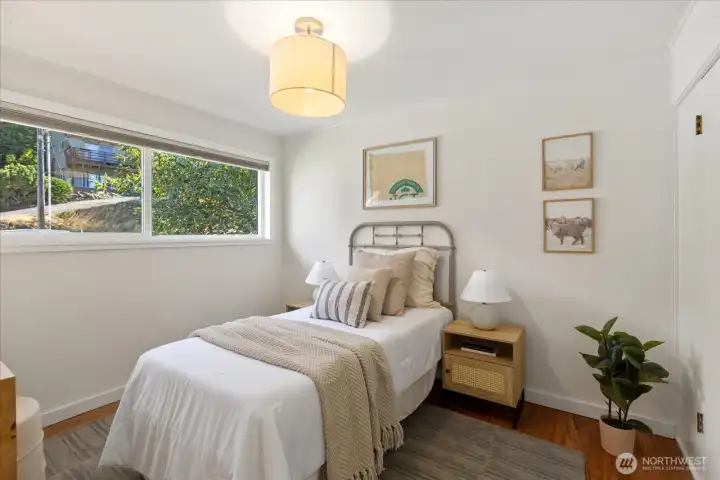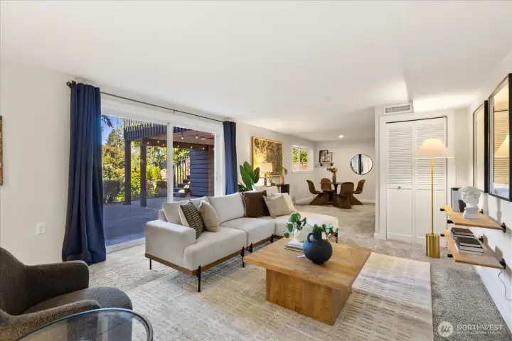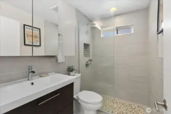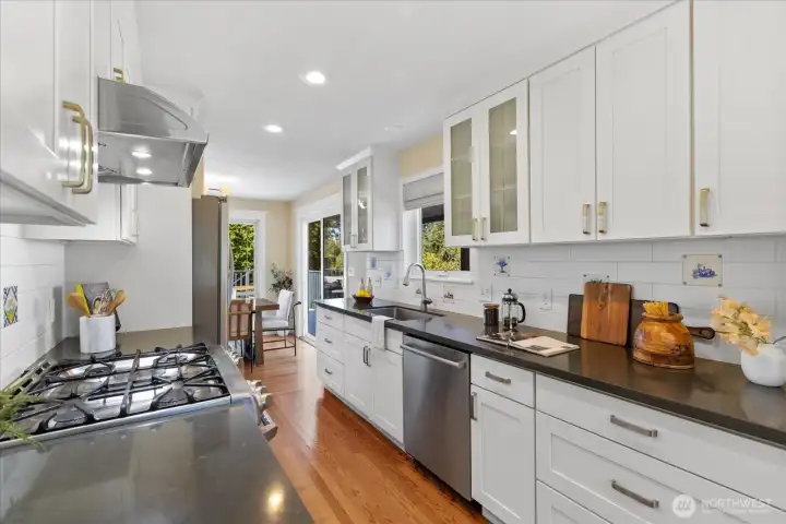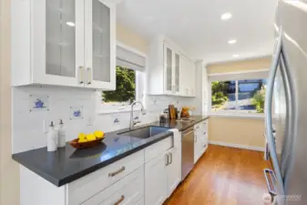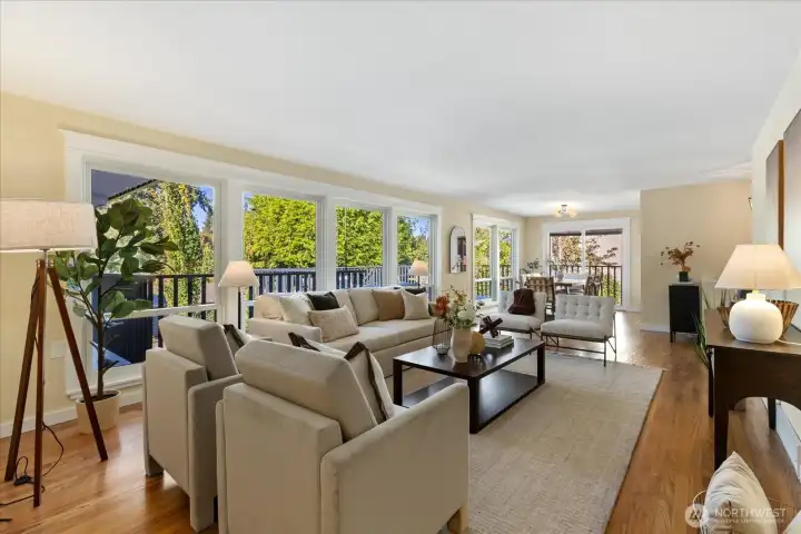 Remodeled and move in ready rambler with basement on a quiet street in Richmond Beach. This 5 bed home features modern kitchen with quartz counters, hardwoods on most of main floor and open dining/living areas. Amazing light/wall of western facing windows with wrap around deck. Main floor primary suite with double closet/walk in, large walk in shower and laundry chute. 2 more beds and remodeled main floor bath. Downstairs is a great family room, tons of storage, 2 more beds and a remodeled bath with cedar sauna! Access to back patio, shed/gardening area, fully fenced/private and beautifully landscaped yard with sprinklers and lighting. Tons of indoor/outdoor entertaining spaces. Minutes to beaches, parks, schools and restaurants.