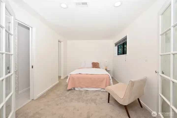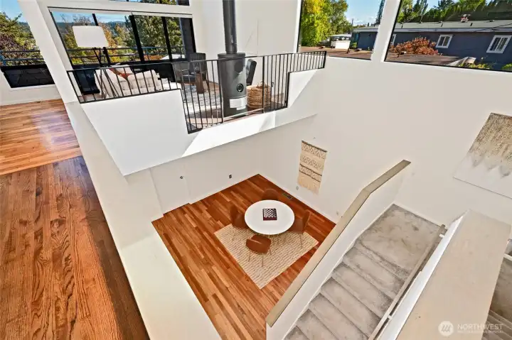 'Modern Treehouse' this dramatic NW Contemporary home features soaring ceilings, wide plank wood floors, updated kitchen & large picture windows. Located atop a tranquil curved hill for a private & serene natural setting. Eastern views to Lake Wash & Cascade Mtns. The main bedroom level features oversized primary w/shared bath, huge closet & private office space. 2nd bedroom & open bonus room on this level for media, play, relaxing. 2nd Lower level offers a huge flex room (recreation, hobby, exercise..) plus a garden guest suite w/new .75 bath. Step out to enjoy luxe sauna, entertaining patio & whimsical yard w/room to play, garden & enjoy everything outdoors. Artisan in its soul resulting in a cozy & down-to-earth place to call home!