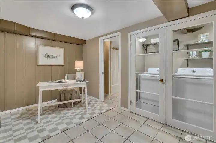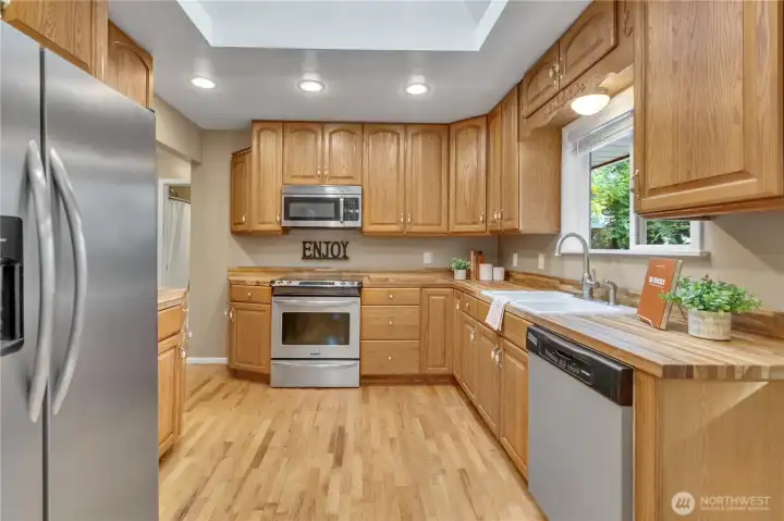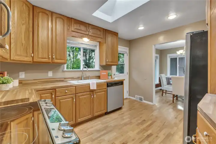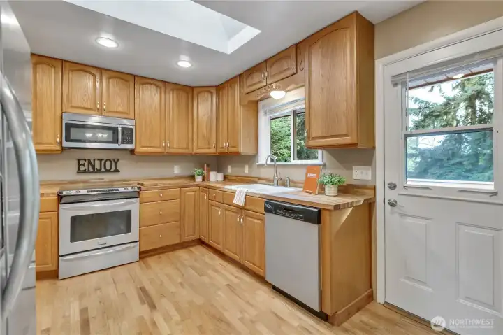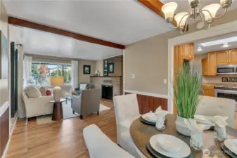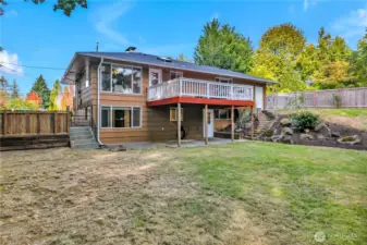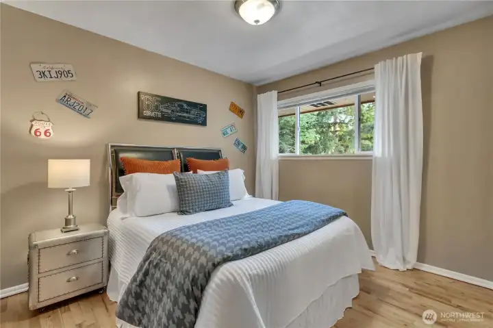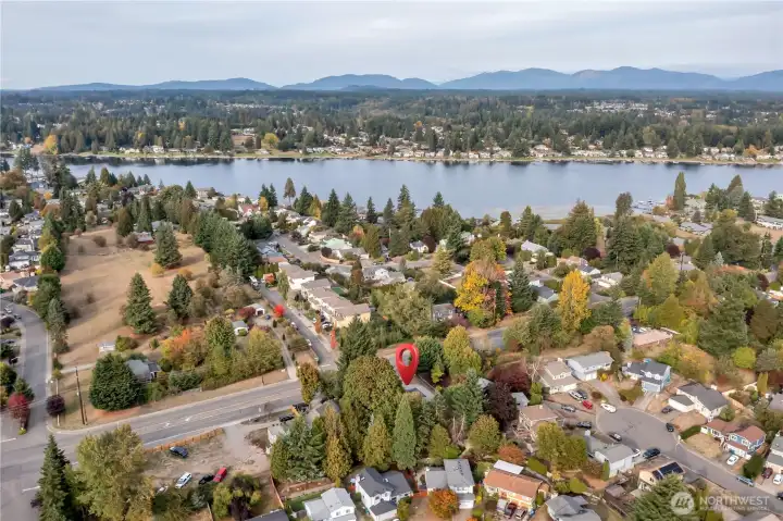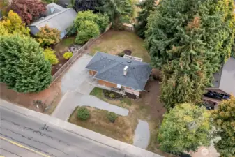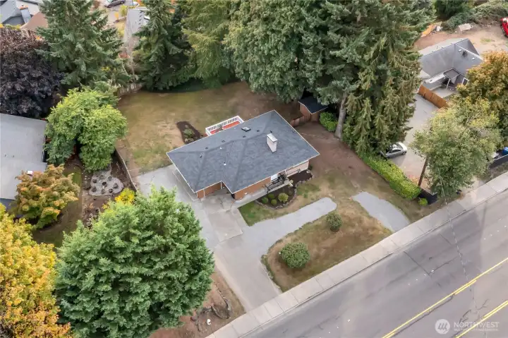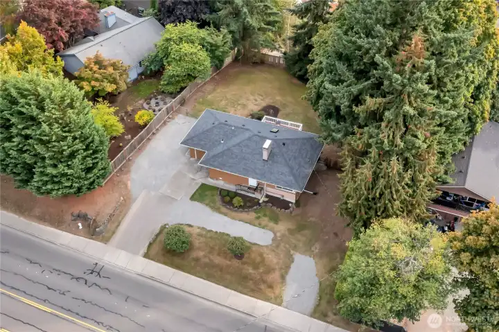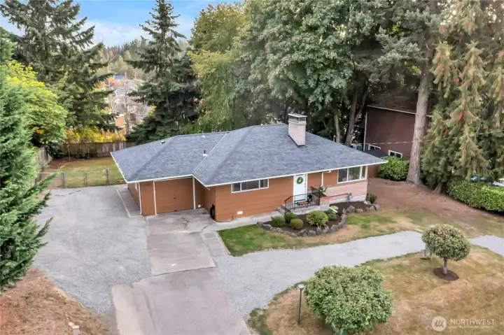 Mid-Century Modern home w/ADU located on double lot! Walking distance to Lake Meridian! Well maintained w/attention to detail throughout. NEW roof, gutters, furnace, int/exterior paint & refinished hardwoods! Circular driveway lead to attached 1-car garage, generous parking & room for RV/Boat. Main flr features 2bd/1ba. Kitchen features butcher block counters, ample cabinetry w/SS App w/access to oversized deck. Rose garden lead to daylight bsmt's private entrance, 2 add'l bdrms & full bath, kitchenette, family rm w/2nd wood fireplace, laundry & endless potential—perfect for multi-gen living, guests, or rental income. NO HOA! Fully fenced private backyard w/shed. Easy access for commuting, shops, parks, recreation & entertainment! Zoned R6.