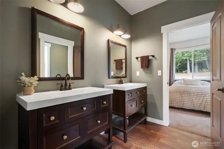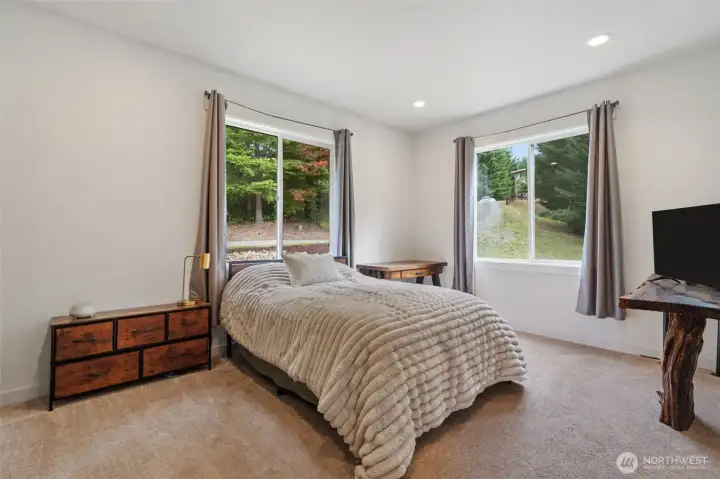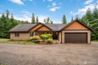 The ideal setup for multi-generational living or rental income! This rare property features a single-level 4-bedroom, 3-bath home plus two ADUs and a shop. The main home offers vaulted ceilings throughout and two private suites, plus a functional layout with forest views from every room. The attached ADU includes 1 bedroom, 1 bath, washer/dryer hookups, and office nook. The detached ADU adds even more versatility with 1 bedroom, 1 bath, laundry hookups, and a loft—great for guests or additional income. Enjoy room to explore outdoors, with paved trail access on the property and a private path leading to the creek. All just three minutes to the freeway. Schedule a tour today! 3D Tour available upon request.