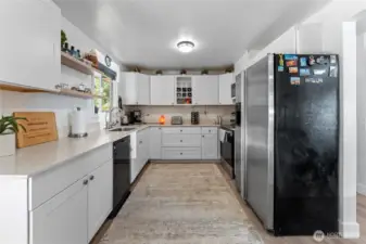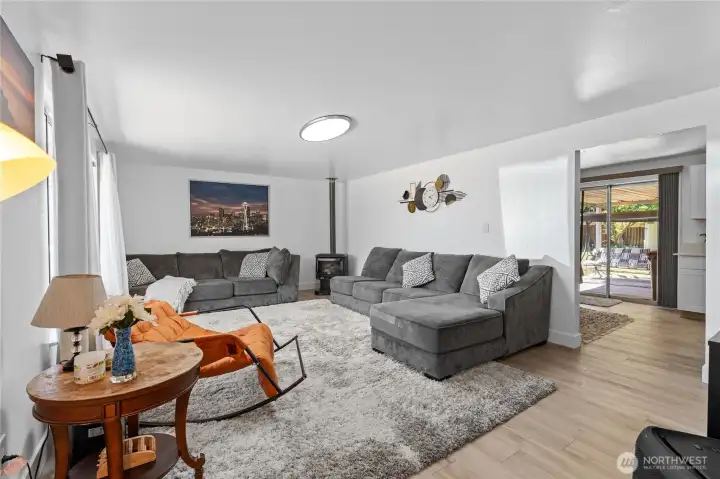 NEW ATTRACTIVE PRICE! Charming 3 bed, 1.5 bath rambler in a sought-after neighborhood in Everett —nestled on a spacious, flat, fenced lot. Step into a warm and welcoming living room filled with natural light, flowing into a stylish kitchen with quartz counters, newer cabinets, fixtures, and appliances. Durable LVP/laminate floors throughout. A convenient half bath with laundry. Down the hall, enjoy 3 generous bedrooms and a spacious full bath with newer tile and vanity. The backyard is an entertainer’s dream with a large patio and a POWERED SHOP—perfect for projects, storage, or extra parking. New lifetime aluminum roof for peace of mind. Walk to Mukilteo School District schools, minutes to Boeing, I-5, 405 & shopping!