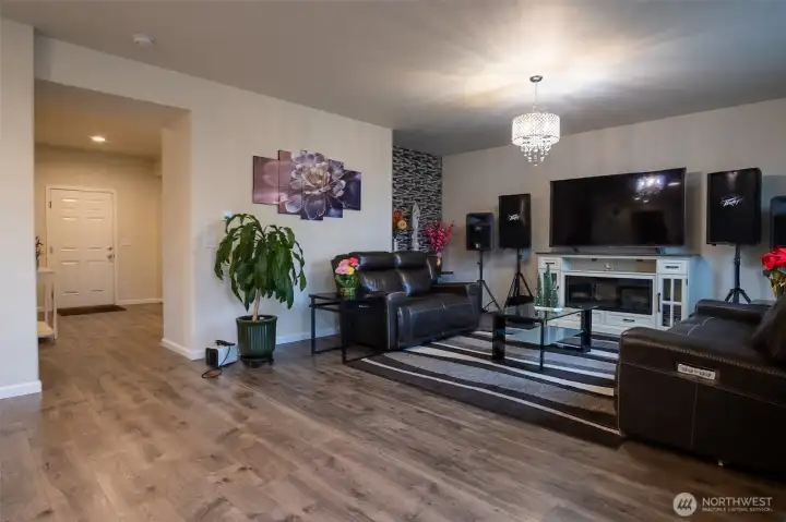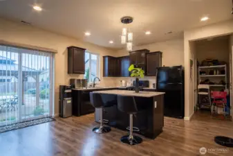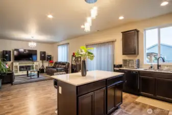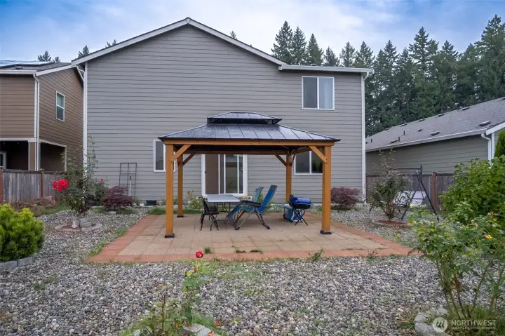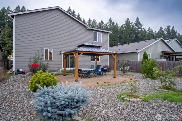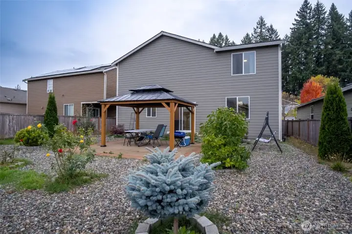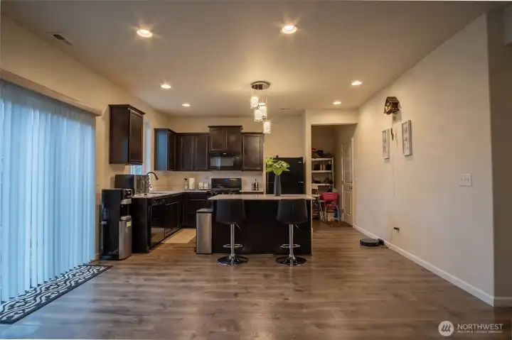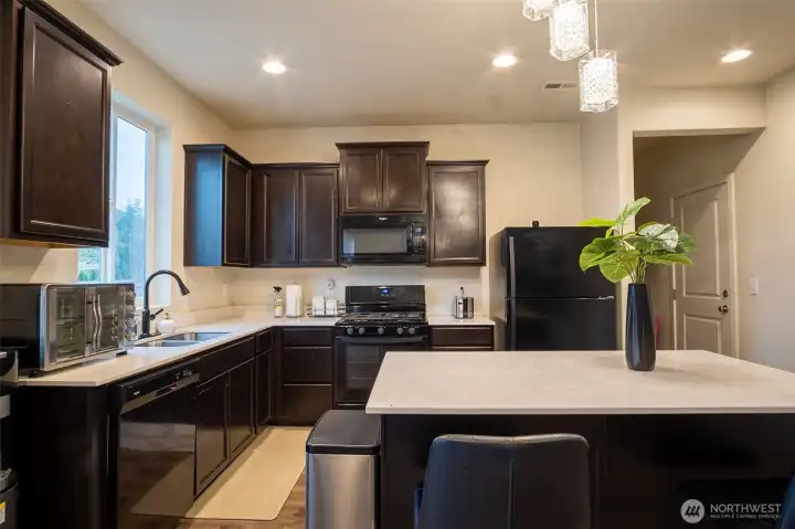 Welcome to this beautiful two-story home featuring a spacious open-concept floor plan! The modern kitchen is a chef’s dream, complete with stunning quartz countertops, elegant wood cabinetry, and ample storage. A versatile den on the main floor offers the perfect space for a home office, study, or guest room. Upgrades throughout the main level include stylish laminate flooring, adding both durability and charm. Upstairs, the generous primary suite offers a luxurious retreat with a large walk-in closet, soaking tub, and a walk-in shower. Step outside to enjoy the covered patio-ideal for gatherings, entertaining, or simply relaxing. The fully fenced yard provides privacy and space for outdoor fun.
