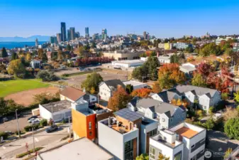 Bold, modern, and design-forward—this PB Elemental townhome in Judkins Park delivers standout architecture with warm materials, clean lines, and flexible space across three levels. Radiant heated concrete floors anchor the open main level, while a dramatic 2-story roll-up window wall creates seamless indoor-outdoor flow. Three bedrooms offer options for guests, work-from-home, or creative space. Rooftop deck brings sweeping views of the mountains and the sound. Solar panels help lower utility costs. Paeking for two cars off-street. Quietly tucked off the street yet minutes to I-90, parks, and the soon-to-open East Link Light Rail. No HOA! Unlike any other townhome on the market!