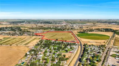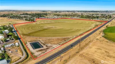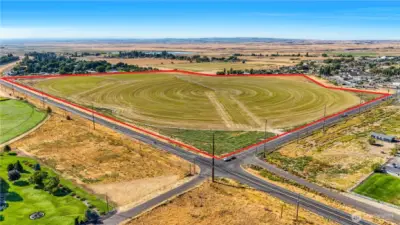 63 acre farm located east of Othello, WA on Taylor Rd and Highway 26. Two new valley pivots were installed in 2024 along with a new pump station, pong and turnout. 63.82 Deeded Acres, 63.9 Bureau Irrigated Acres, 53 acres under Circle. Potential Development Ground: Water from Water District No. 1 located in Taylor Rd. Sewer in Taylor Rd. Electricity in overhead lines on Hwy 26 and Taylor Rd. Located in Adams County. 25.21 Acres of M&I Water.