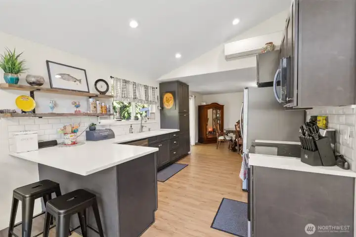 Live the Northwest dream in this light-filled 3-bed, 1.75-bath home on a generous ¾-acre lot! Vaulted ceilings and floor-to-ceiling windows bring the outdoors in, while the remodeled kitchen and baths add stylish comfort. The expansive fenced backyard is perfect for pets, play, or peaceful evenings. A huge double carport with storage and a separate shop makes room for all your gear and hobbies. Located in a quiet East Port Angeles neighborhood, this home is your gateway to coastal charm, mountain adventures, and laid-back living.