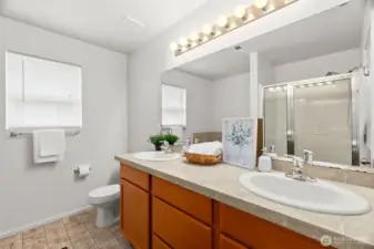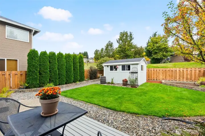 This immaculate Tumwater Hill gem shines with a wide-open floor plan and gleaming hardwoods throughout the main. Great room features vaulted ceilings, cozy gas FP, & lg windows framing views of the lush, fully fenced backyard w/raised garden beds & a charming 10’x12’ shed/workshop. Well-appointed kitchen flows seamlessly to dining & living rooms. Upstairs, the spacious primary suite offers peaceful views & a luxurious bath w/dual vanities, soaking tub, walk-in shower & walk-in closet. Two addit’l BRs, a guest bath & a versatile loft complete the home. With a NEW ROOF, NEW FURNACE & ALL APPLIANCES included, this one is truly move-in ready! Convenient to I-5, shopping, dining & Tumwater schools. Just settle in, unwind & love where you live!