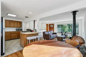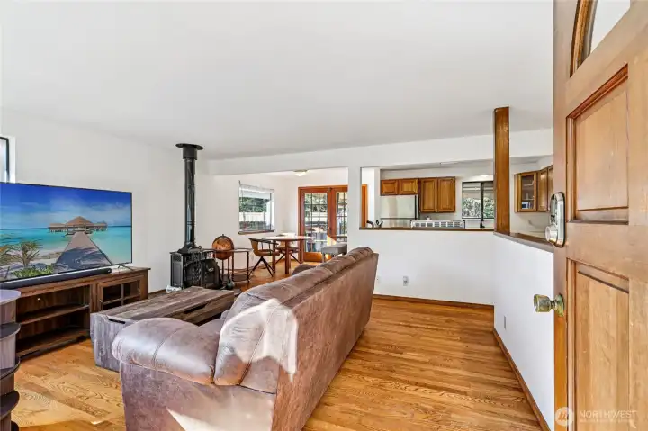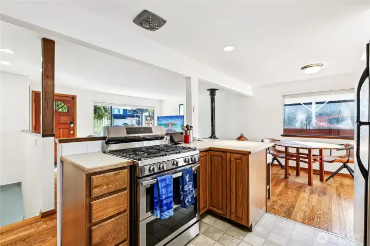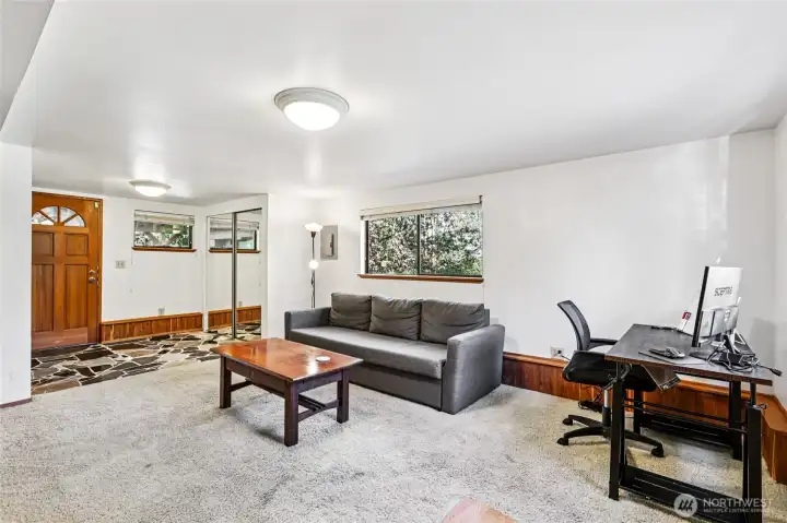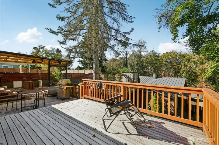 Tucked away on a quiet dead-end street, this spacious home offers a flexible layout perfect for multi-generational living or income producing opportunities. The main level features an open-concept design filled with natural light, dining space and fantastic kitchen- complemented by an oversized covered deck that overlooks a private backyard and adjacent green space- no side neighbors! Main level also boasts 2 bedrooms and a full bath, while the fully finished lower level includes 2 additional bedrooms, 1.5 baths, a second kitchen, and separate entrance—ideal for extended or short term stays. Ample off-street parking and easy access to the H Line bus (direct access to DT Seattle), and next door Delridge Native Forest Garden Project underway!