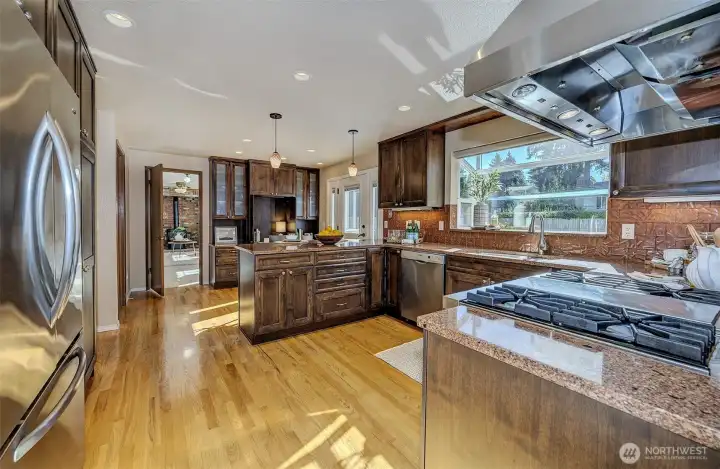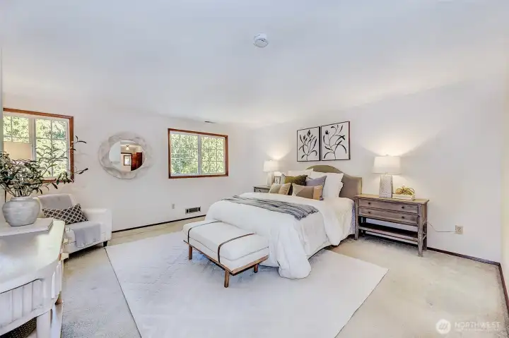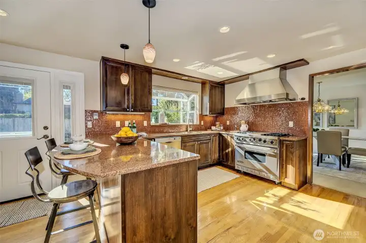 Peaceful Retreat Meets Coastal Charm in Edmonds’ Coveted Maplewood! Tucked down a quiet, non-through street, this charming home sits on a generous 12,500 sq. ft. level lot blending peaceful privacy with easy access to downtown Edmonds beaches, boutiques, eateries and Yost Park. Sunlight fills the inviting living and dining rooms, anchored by a cozy gas fireplace. The stunning remodeled kitchen w/Viking & Bosch appliances flows effortlessly to the spacious bonus room, second fireplace and newer heat pump with A/C. Enjoy summer BBQ’s or quiet mornings on the spacious Trex deck in your private fenced yard. Upstairs, unwind in the tranquil primary suite w/walk-in closet and ensuite bath,plus three additional bedrooms and full bath.Welcome Home!