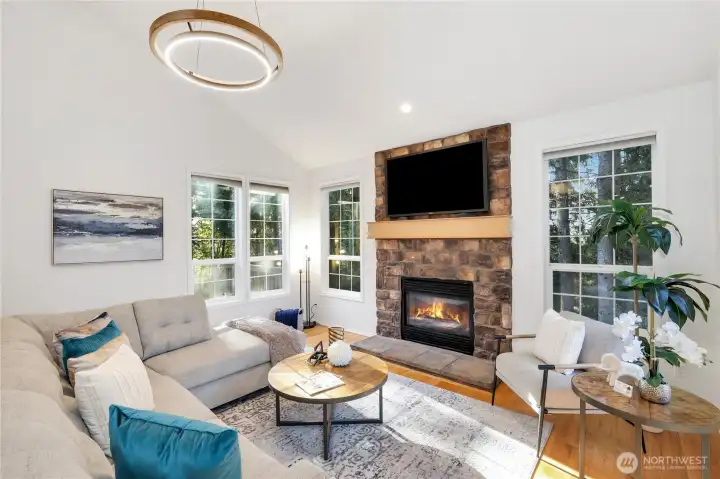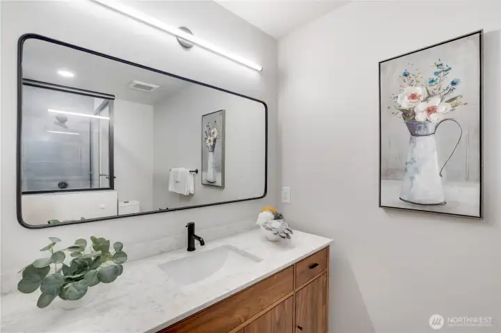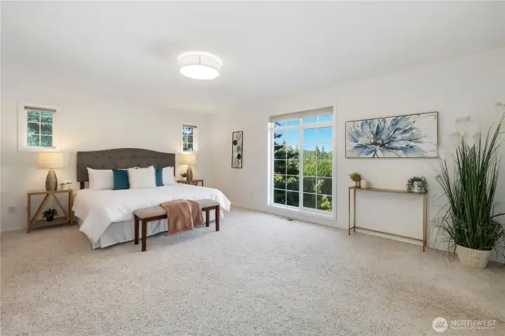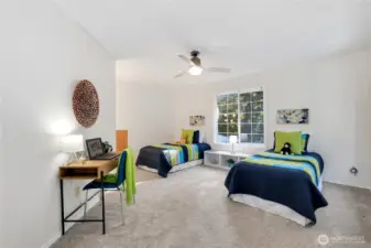 Quality-built 4BD/3BA home in desirable Honey Creek on a quiet cul-de-sac with a private, park-like setting. Features a welcoming entry, formal living/dining, spacious family room perfect for entertaining, and main-level den plus a bedroom with full bath—ideal for guests or extended living. Kitchen with quartz counters and newer appliances, including induction cooktop. The large fenced backyard backs up to green space to make for a private outdoor retreat. Recent updates: new roof, interior paint, furnace, AC, water heater, sealed ducting, and fully remodeled primary and guest baths. 3-car garage, extra parking. Great location near Coal Creek, trails, golf, shopping, dining, and easy access to I-405, I-90, Bellevue, and Seattle.
