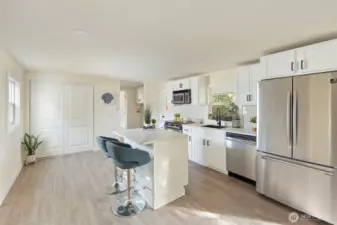 Beautifully remodeled 2-bedroom, 2-bath home with an additional office—perfect for remote work or guests! Enjoy the stylish kitchen and updated bathrooms, plus new windows, fresh paint inside & out, and new flooring throughout. Covered parking with storage and located on a desirable corner lot. Situated in the sought-after Leisure Manor community featuring a clubhouse, park, and walkable neighborhood close to shopping, amenities, and bus line. Pet-friendly (under 40 lbs) and move-in ready—this one shines!