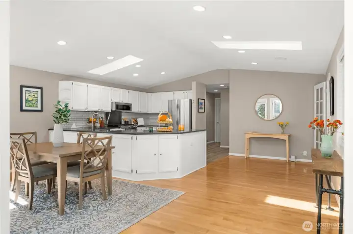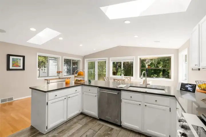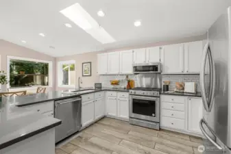 Pride of ownership shines in this beautifully updated Broadview rambler, designed w/ entertaining in mind. Vaulted ceilings, abundant windows, & skylights flood the remodeled kitchen & great rm w/ natural light - even on classic gray Seattle days. Luxury finishes include quartz ctops, subway tile, and gleaming hardwood floors. Step outside to your ultra-private backyard retreat or take in breathtaking sunsets from the front deck. Ample off-street parking and a brand-new sewer line from the street to the home. This home lives larger than its sq ft suggests, nestled on a quiet, dead-end street in a sought-after neighborhood. Just blocks from Carkeek Park and minutes to shops, dining, Hwy 99 & I-5. Peaceful living w/ unbeatable convenience.