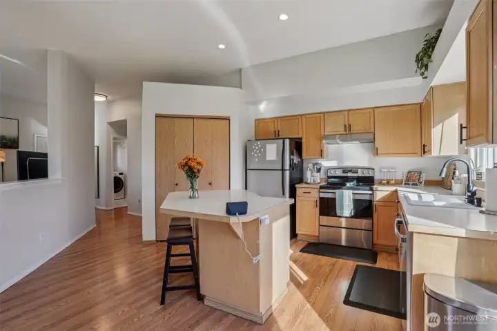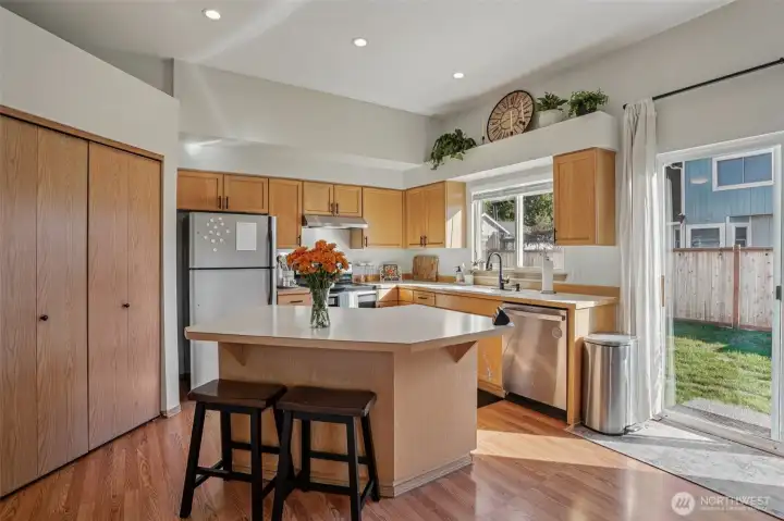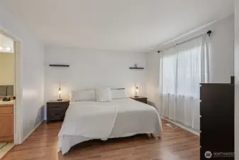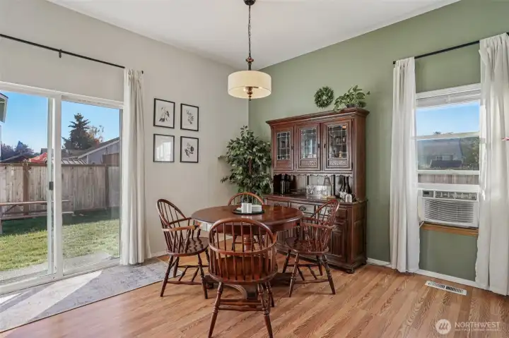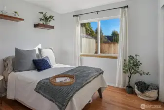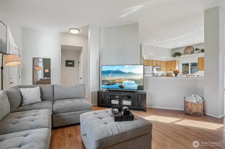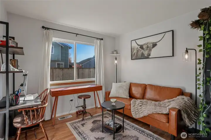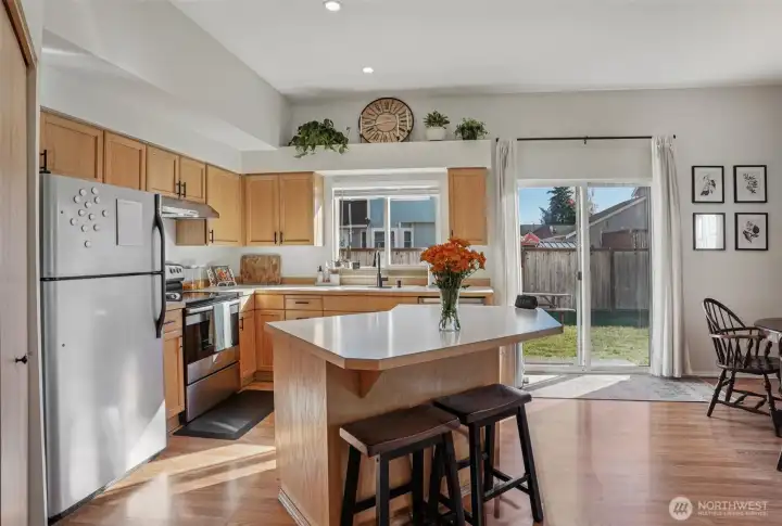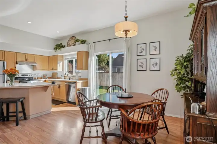 Charming 3-bedroom, 2-bath, 1,404 sq. ft. rambler featuring a partial view of Mt. Rainier. Nestled on a quiet cul-de-sac, this home offers an inviting open floor plan with vaulted ceilings, laminate flooring throughout, and abundant natural light. The fully fenced backyard includes a storage shed, while a stand-alone gas stove and programmable thermostat add comfort and convenience. The spacious primary bedroom features an en-suite bath and a generous walk-in closet. Ideally located near shopping, parks, a dog park, restaurants, and more—this home combines comfort, functionality, and a desirable location.