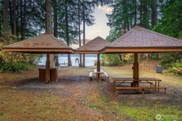 With this home, location is everything! Originally the community’s sales office, this bright and charming 1-bedroom, ¾-bath cabin with bonus room, features tall ceilings, picture windows, and timeless character throughout. Situated on a large, private lot with a new roof and a deck perfect for entertaining, the property backs to trees and nature for ultimate privacy. Just a 2-minute walk to the lake via a private trail, residents can enjoy 14 miles of scenic trails, 6 beaches, 3 lakes for fishing, boating, and swimming, 5 parks with cabanas, tennis courts, and a community center with pool and hot tub. With some minor updates, you could make this historic cabin your dream home or cozy getaway. Call Michele 253-249-6936