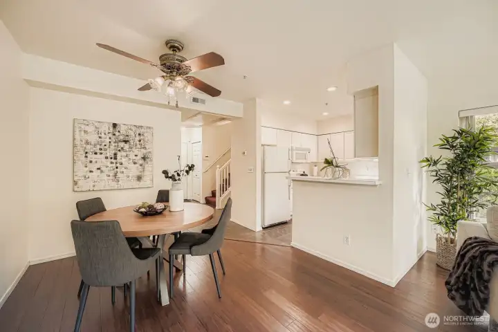 Well-designed corner-unit in Tall-Firs townhome community! Featuring a soaring vaulted entryway and fresh interior paint. The inviting lightly-filled kitchen offers white cabinetry & opens to bright & spacious living and dining areas, 1/2 bath downstairs with a cozy fireplace—perfect for everyday comfort or entertaining. Upstairs includes a primary suite with a walk-in closet & private bath, plus two additional bedrooms, and a full bath. Convenient laundry room with washer & dryer downstairs. New roof in 2024. Enjoy a private patio for outdoor relaxation. Attached two-car garage with additional parking in front. Great location close to schools, shopping, and easy access to Hwy 167 and I-405. HOA dues include water, sewer, and garbage."
