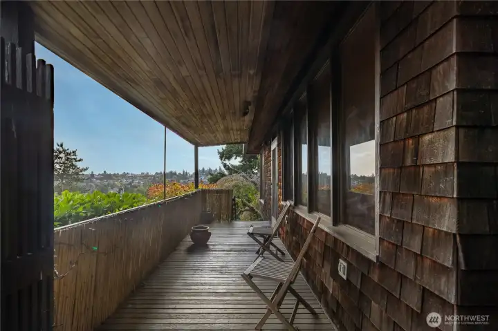 Tucked away on an estate-like setting, this Northwest Contemporary home offers rare privacy with sweeping territorial and beautiful sound and mountain views. The architecture embraces its natural surroundings, blending light, texture, and thoughtful design throughout. Expansive windows frame the scenery, while open living spaces and a sleek kitchen make every moment feel connected to the outdoors. Upstairs, the primary suite and sun deck invite calm and reflection. Downstairs, an Irish pub and rec room create the perfect gathering spot. A hidden retreat just moments from Magnolia’s village, parks, and in city living while feeling a world away. Garage plus off street parking. Also has a protected view on title.