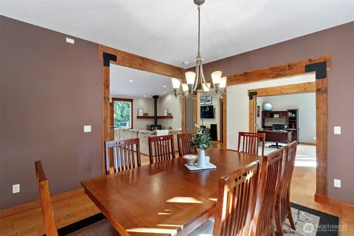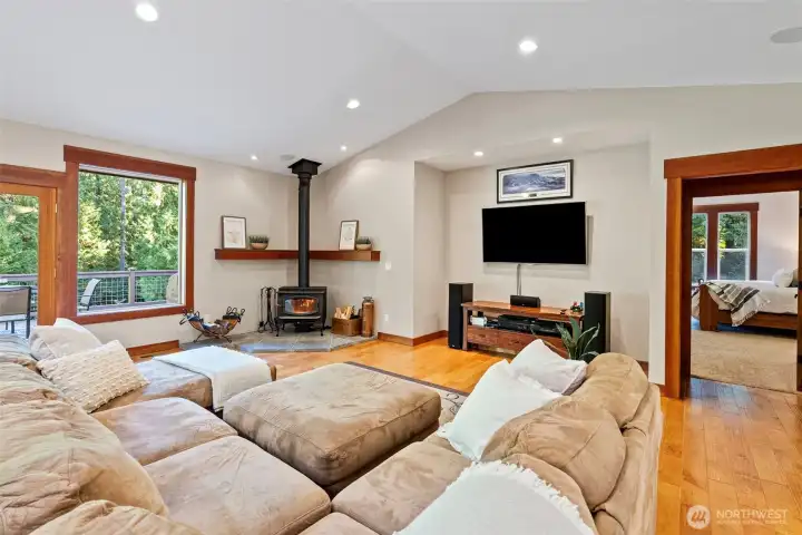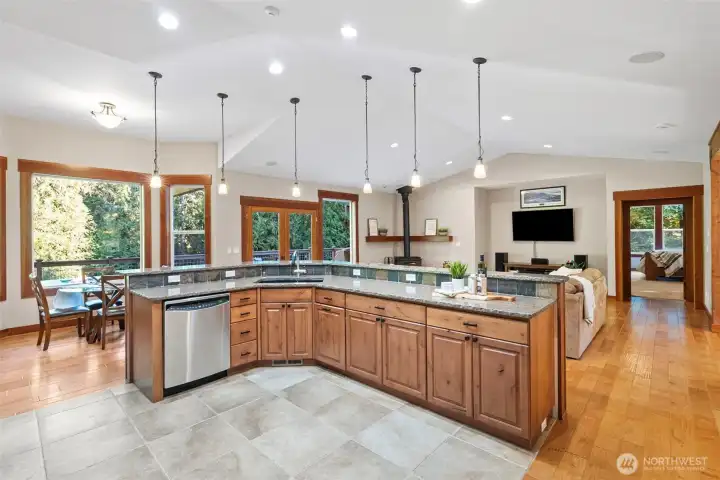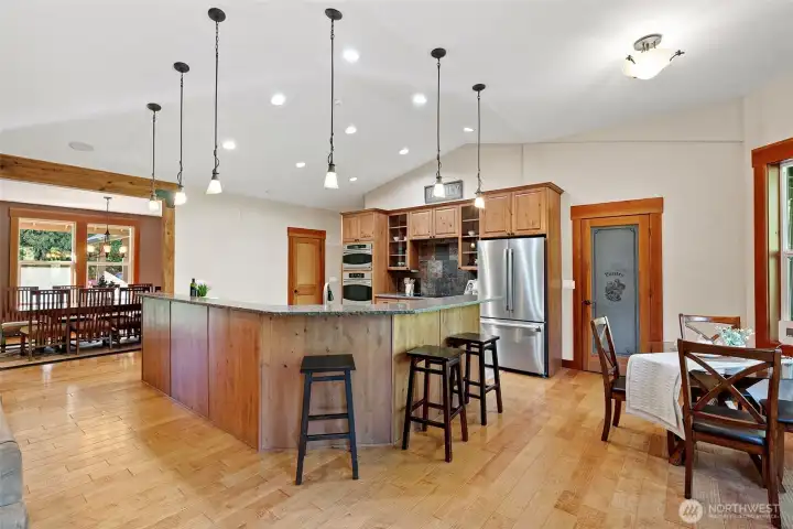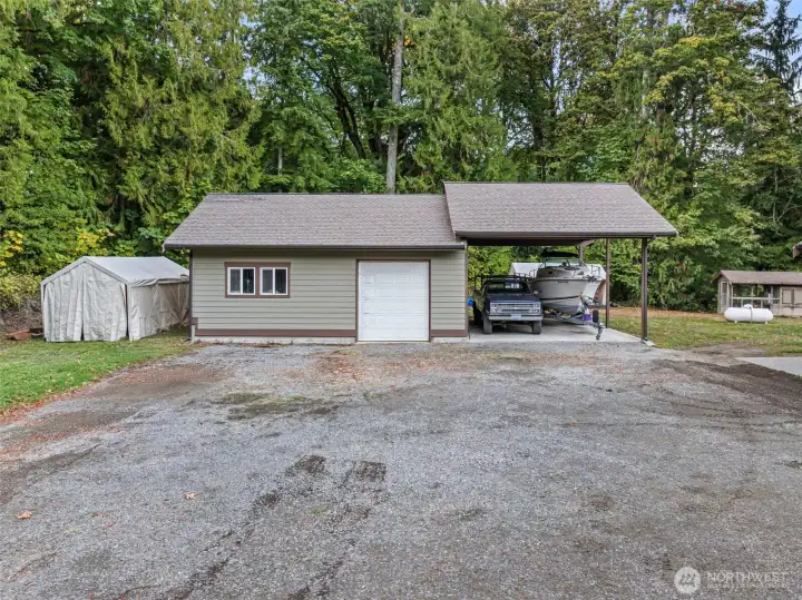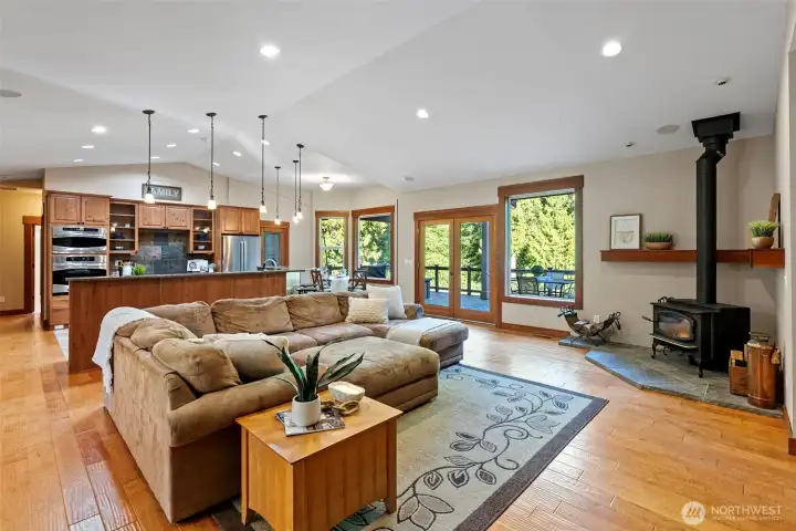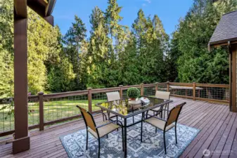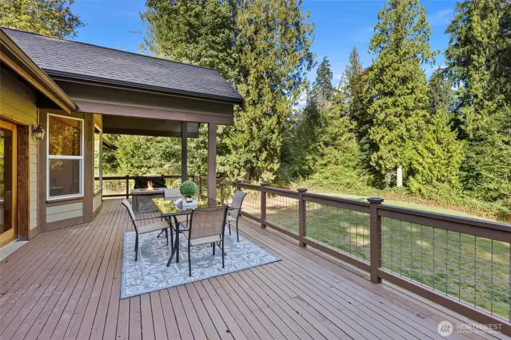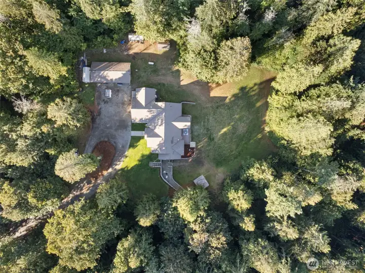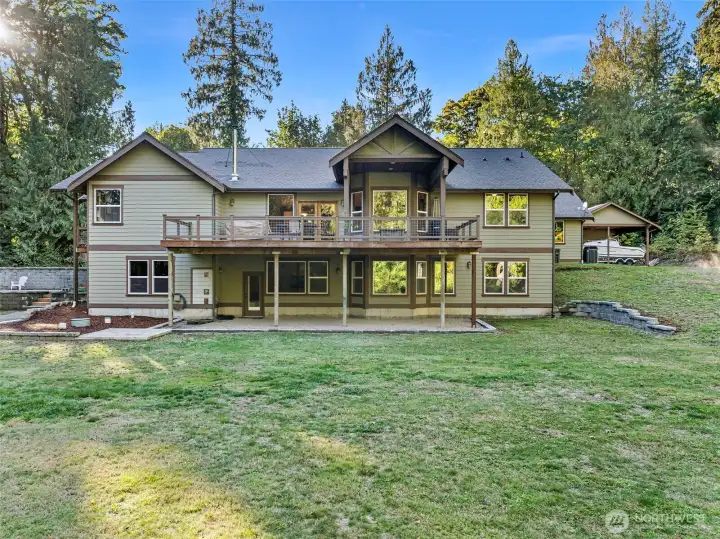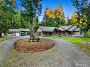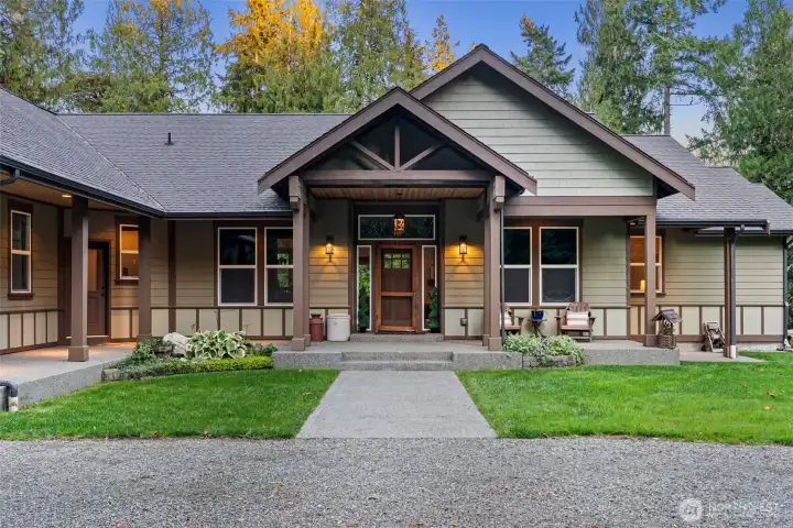 Peaceful living minutes from town in this stunning custom-built craftsman on 5 private usable acres. Designed for comfort & function, this home offers single-level living w/ finished daylight basement plumbed for kitchenette ideal for guests or multigenerational living. Gourmet kitchen w/ bar seating, quartz counters, & seamless flow into open living spaces filled w/ natural light. Step outside to expansive deck & patio surrounded by trees, wired for hot tub, w/ outdoor shower & under-eave outlets ready for holiday lights. 25x30 shop w/ attached 25x20 carport for RV or boat. 3-car garage, whole-home speakers, generator hookup, irrigation-ready yard, chicken coop, wood-burning stove, A/C. A rare blend of privacy, practicality & convenience!