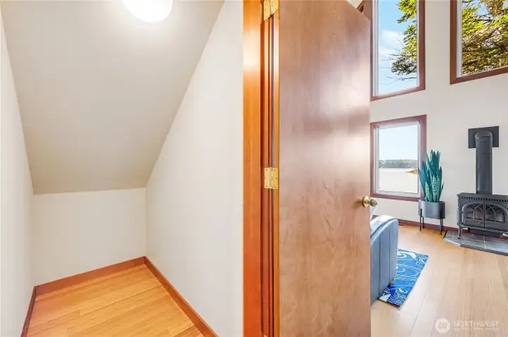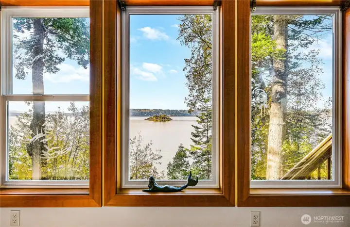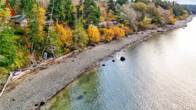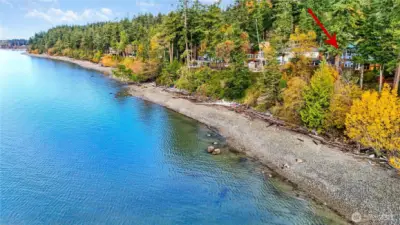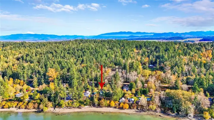 SPECTACULAR VIEW! PNW waterfront home with medium bank and beach rights—ideal for year-round living. Floor-to-ceiling windows frame breathtaking views of Skagit Bay, the Olympic Mountains, and Whidbey Island. Open-concept design with cathedral ceilings, stainless steel appliances, abundant natural light, main floor guest bedroom, and plenty of storage. Cozy freestanding gas stove and heat pump with A/C. Relax on the spacious deck with glass wind protection or stroll down the backyard stairs to the beach. Upper level features a primary suite with ¾ bath and loft/office. Upper level carpets have been removed and bathroom renovations are incomplete waiting for your finishing touches. BIA Leased land-50 year term. Estate sale—sold as is.