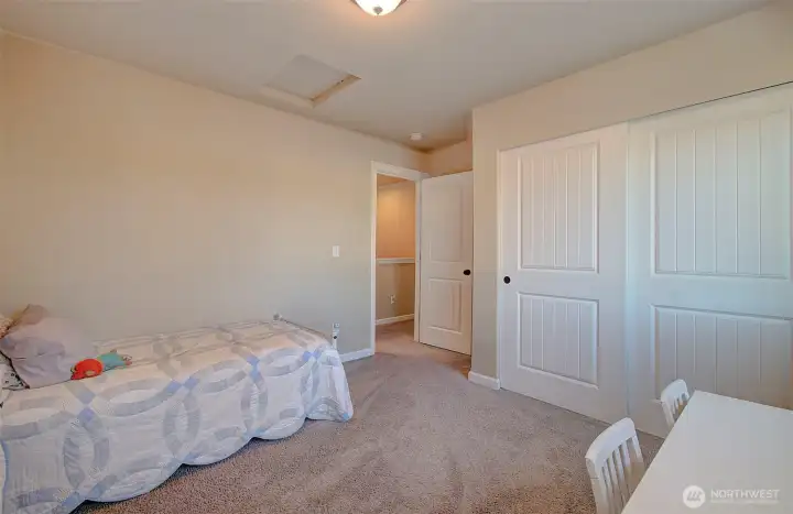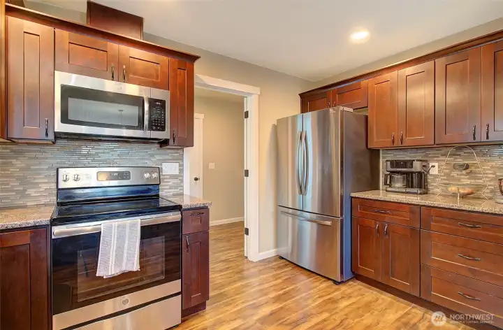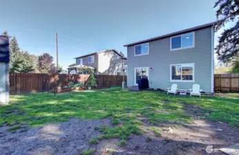 Tucked away on a quiet dead-end street, this 4-bedroom, 2.5-bath home built in 2019 feels like new with fresh interior paint. The open-concept layout features a spacious kitchen with granite counters and stainless appliances that flow into a cozy living area. Walk in pantry and storage. All appliances stay including w/d. Upstairs includes all four bedrooms, with a generous primary suite and private bath. Enjoy year-round comfort with a heat pump and A/C. Outside, the fenced yard offers a 10x12 shed with loft and peaceful greenbelt views. RV outlet (30 amp) included. Located just 16 miles from Olympia and steps from the Tenino-Yelm Trail, this move-in-ready home blends small-town charm with everyday convenience!