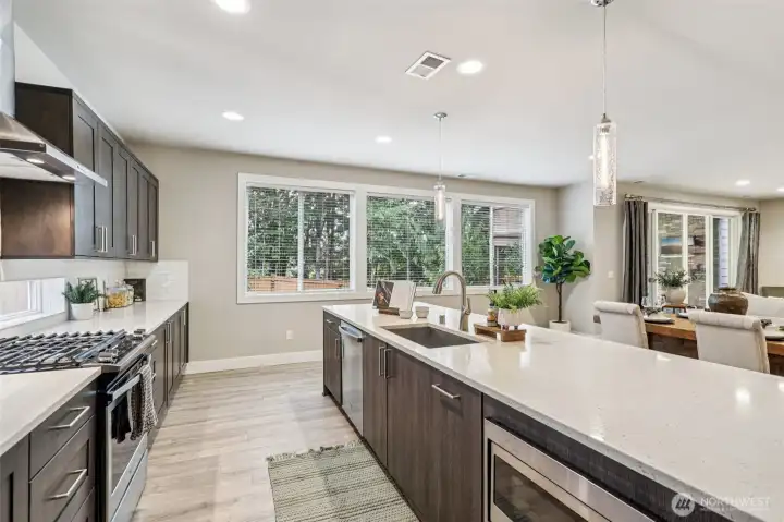 This stunning home in the desirable Willow Ridge neighborhood offers a 3-car garage and exceptional outdoor living. The gourmet kitchen features a Quartz island, elegant tile, and tile window splash. A true chef’s delight! The open floor plan flows seamlessly to a 12’ grand French slider, creating over 700 sq. ft. of outdoor living with a covered deck and outdoor fireplace. Upstairs includes a large loft with a deck, four bedrooms, and a spacious primary suite with designer sinks and a luxury tile shower. Fully fenced on a greenbelt, offering privacy and serene views. Additional highlights include A/C and thoughtful finishes throughout. Enjoy access to the community sports court for recreation and neighborhood fun. Meticulously maintained!