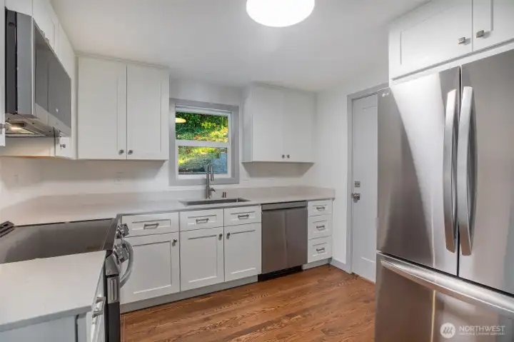 Rare rambler has been meticulously updated, featuring newer plumbing, electrical, and a stunning new kitchen and modern bathrooms. With 1,470SF, this one story gem offers four spacious bedrooms and two bathrooms, including a potential rentable studio with its own entrance, kitchenette, and bathroom, previously earning $1,200/month. Enjoy new windows, fresh paint inside and out, refinished hardwoods, and modern lighting throughout. Step outside to a spacious deck perfect for barbecues. Private front and side yards and an attic with lots of storage. Three off street parking spaces/RV parking. Just half a block from Lincoln Park and a short stroll to the Fauntleroy Ferry and local eateries, this home blends comfort and convenience beautifully!