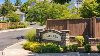 Move-in ready with fresh paint and brand new LVT flooring throughout (no carpet) at this immaculate corner end unit! Enter to living room with wonderful natural light, cozy fireplace w tile surround & slider to patio. Open design kitchen: wood cabinetry, new fridge, newer range & microwave. Fantastic layout w/two bedrooms including generous Primary Suite can fit a king sz bed, walk-in closet, it's own full bath: double sinks & oversized soaking tub. Head down the hall to the Guest Bedroom, new hallway bath w new custom walk-in glass shower w rainhead, & laundry in-unit. Popular Carrara at Lakeland, and easy one-level living. Detached garage parking. Community w/parks, Clubhouse. Enjoy an active Lakeland lifestyle!