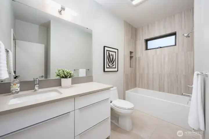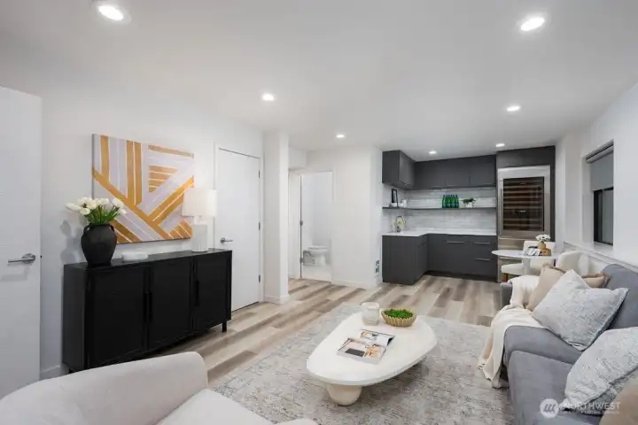 Welcome to fun, fresh Fremont, Seattle's own time capsule of culture, "The Center of The Universe"! World-Class dining and vibrant street art, fantastical parades, the Zoo, live music & the Fremont Cut Tech hub a few blocks in each direction. Stunning curb appeal with custom wood exterior & feature lighting; gracious interior detailing and custom features, 10 Ft ceilings, a sprawling living room centered on an architectural floating staircase; Luxurious, spa-like bathrooms, premium appliances, & a spectacular rooftop terrace in the trees with sweeping views of Seattle and Rainier. Private yard with covered deck. A full self-contained ADU on the main floor, (4th bedroom) A veritable private oasis in the heart of Seattle's favorite enclave.