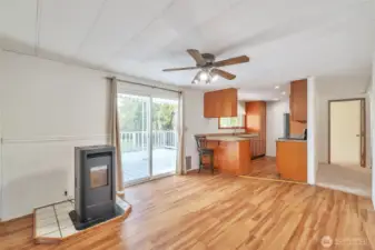 This floor plan will check all your boxes, Large formal living room, space saver kitchen, large dining area, two good sized bedrooms, bonus room, and a large laundry area. New interior carpet, new vinyl plank flooring, newer appliances, new paint in and out. Home has a 3-year-old roof, newer kitchen cabinets, and a pellet stove. This charming and move in ready home sits on a generous sized lot, good sized fenced back yard with a large entertaining deck. Large carport with access to back yard. Top it off no HOA dues here and no space rent here!