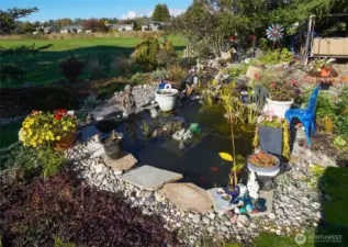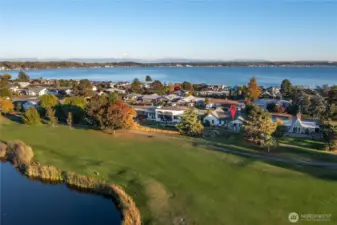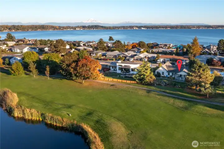 Wake up to serene views of the first green & lake from the covered deck of this beautifully maintained custom golf course home. Thoughtfully designed w/radiant floor heat, vaulted ceilings, & open great room—perfect for entertaining or quiet mornings by the gas fireplace. The kitchen shines with new quartz countertops, a large island with sink, & custom cabinetry, while beautiful built-ins enhance the living room. Upstairs, enjoy a spacious bonus room with Mt. Baker views. Outdoors, unwind beside your private waterfall & koi pond surrounded by lush landscaping, vibrant plantings, & fruit trees. Birch Bay Village offers resort-style amenities—private marina, beaches, parks, clubhouse, pool, tennis, pickleball, and 24-hour gated security.