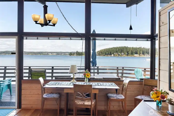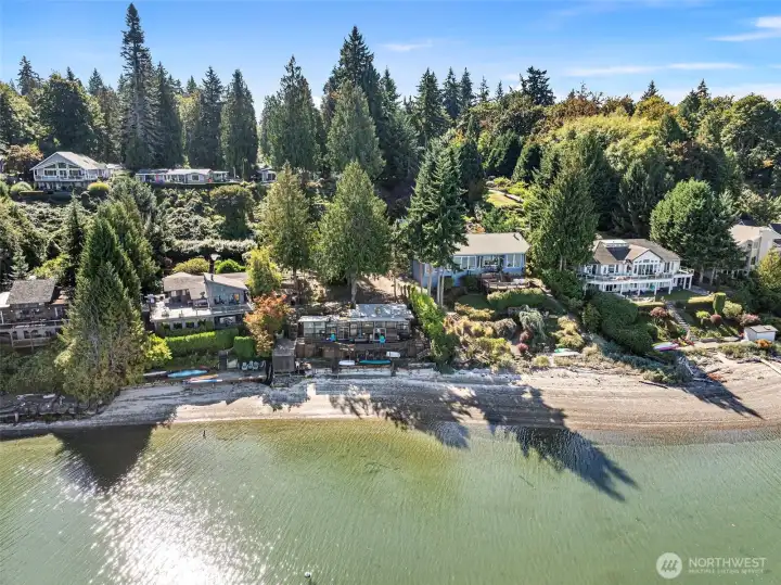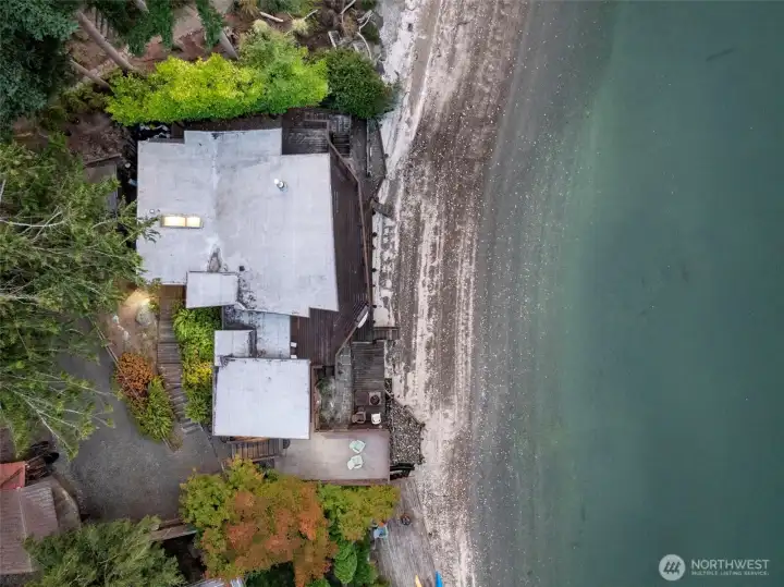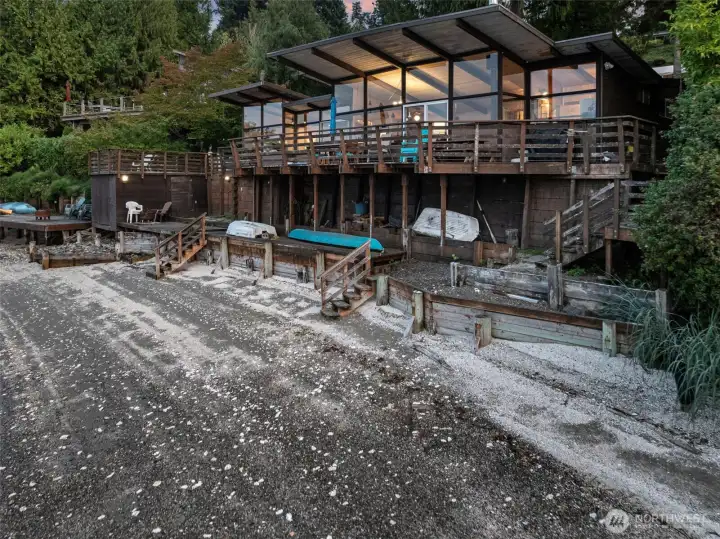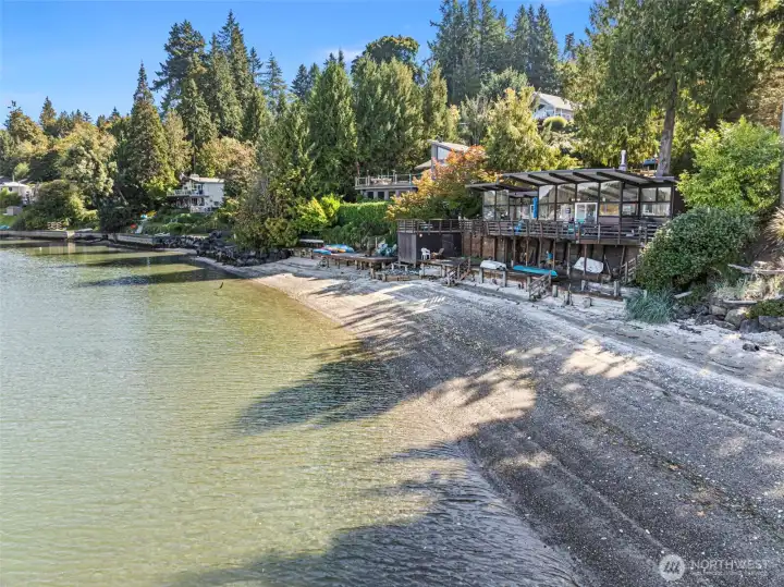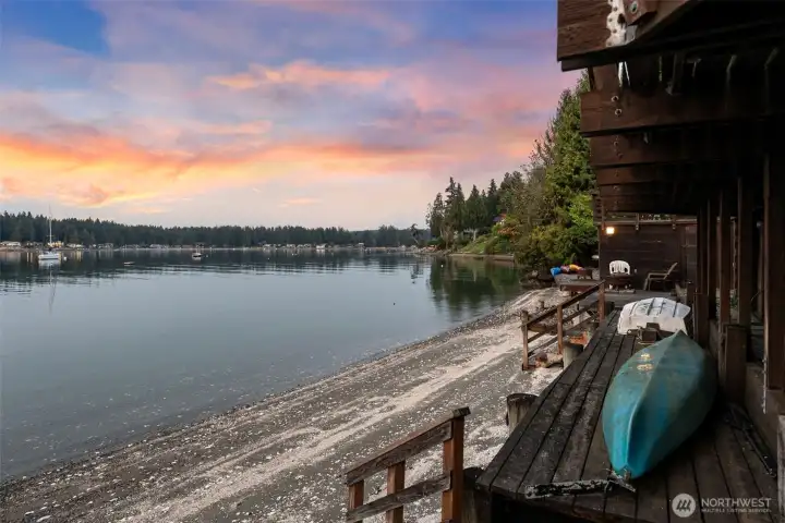 Charming mid-century Raft Island retreat with 80 feet of coveted low-bank waterfront, literally at the water’s edge. A wall of windows captures all the action on the Sound, framed by sweeping Olympic Mountain views and nightly sunsets. The thoughtfully updated kitchen flows into a cozy family room with tongue-and-groove wood walls and ceilings, adding to the coastal vibe. With 2 bedrooms, expansive entertaining deck, and a boat house perfect for kayaks or paddleboards, this darling cottage combines timeless character with modern updates. Large shed and ample parking complete this rare waterfront find. Raft Island community Features include two parks, and the athletic court has pickleball as well as tennis courts.