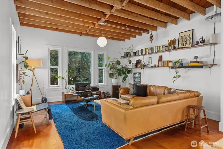 A rare gem in South Park—this modernized Foursquare is a private retreat tucked behind a tree-lined gate. Step inside to a warm, character-rich home w/ a spacious foyer & wide staircase leading to four upstairs bedrooms & beautifully remodeled bath. The primary features a built-in closet & bed alcove. The main level was reimagined with care & timeless design: exposed ceilings, salvaged fir floors, cozy window bench, reimagined bathroom, custom kitchen cabinets, maple butcher block counters, & walk-in pantry. Outside, enjoy a brand-new roof, entertaining deck, raised garden beds & generous backyard w/ alley access. A truly special home, thoughtfully revived—just around the corner from local restaurants & minutes from downtown & the airport.