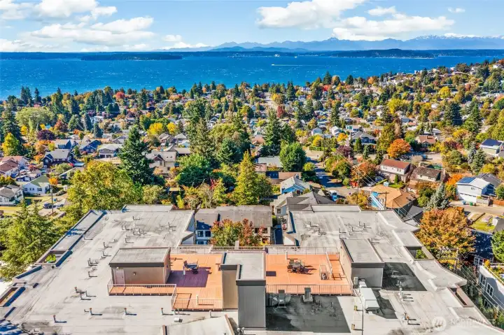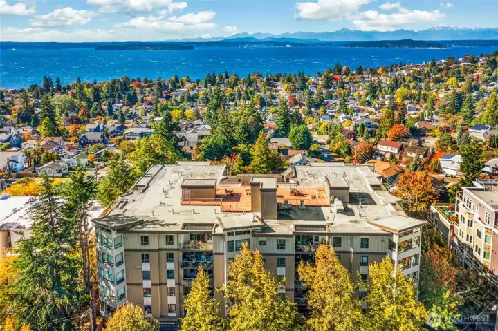 Beautiful and well maintained unit at the sought after Adelaide Condominiums. This light-filled, Southeast corner condo offers an impressive 1,200+ square feet! Lots of living space, featuring large two bedrooms, including a primary with an ensuite bath! Updated kitchen with large pantry and cabinet space. Private deck with water views, perfect for entertaining or enjoying the sunsets! Situated on the fifth floor of a desirable West Seattle building, this home combines urban convenience with a tranquil feel. Lots of storage in this unit! Tandem two parking spaces dedicated for this unit. Complex features gym, sauna, recreation room, and an amazing roof top deck with gorgeous Puget Sound Views! Do not miss this one!