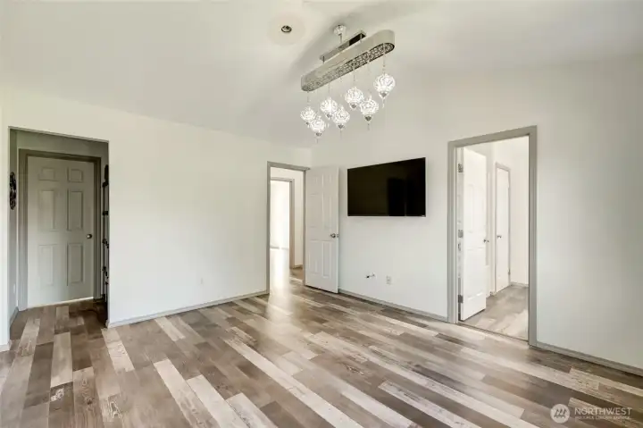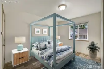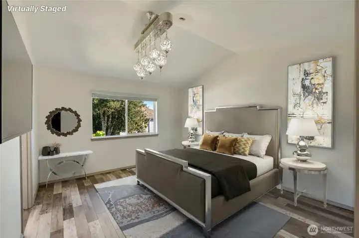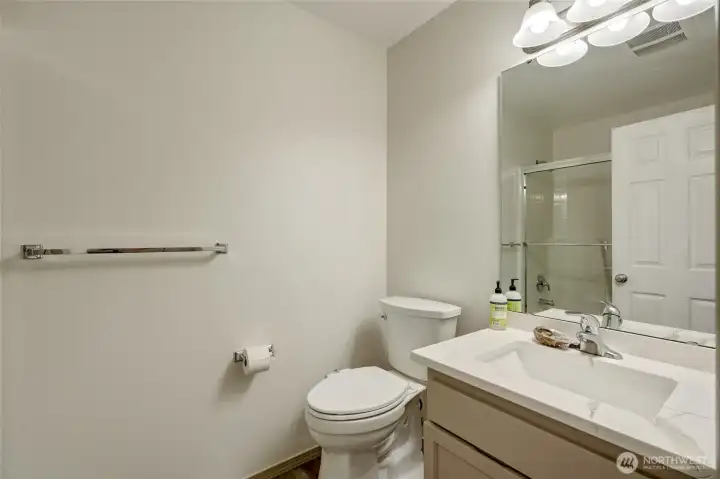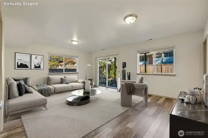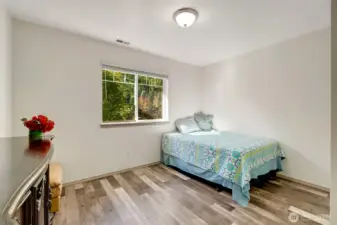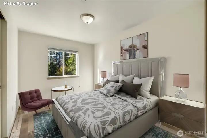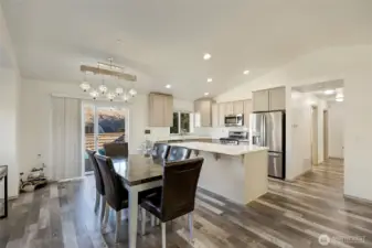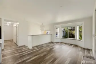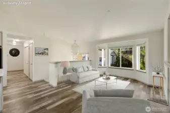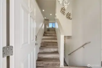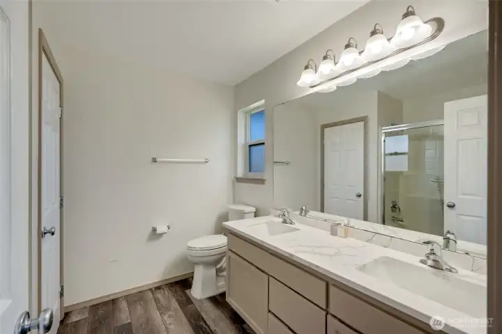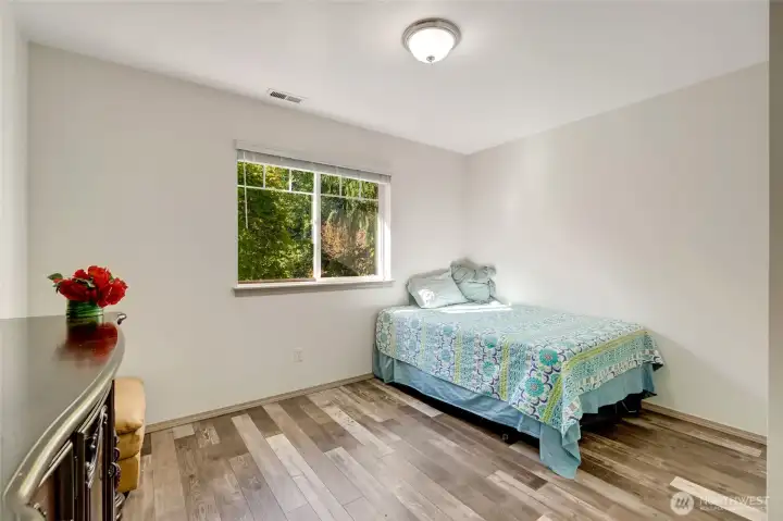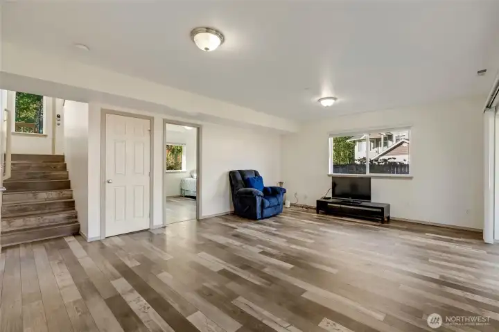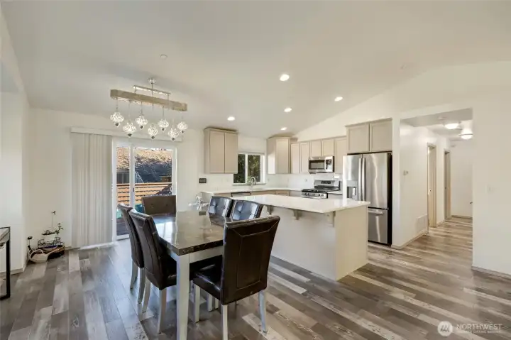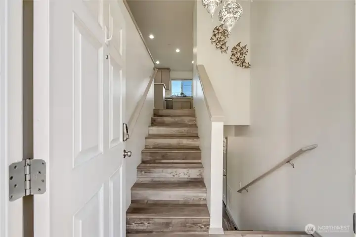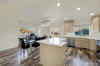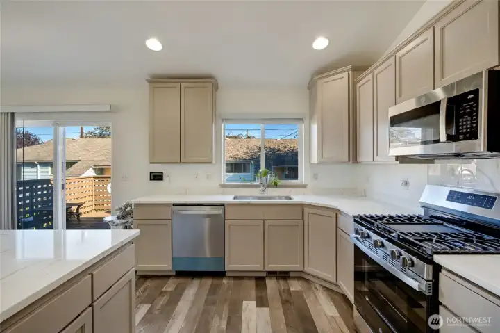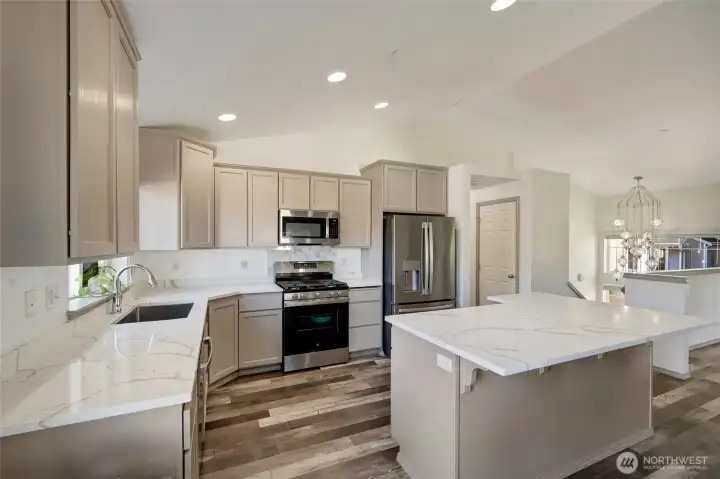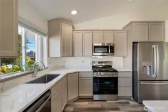 Rare opportunity to own this pet/smoke free, gently used 2008 split-level gem that offers 1,978 sf of open-concept living w/ 4 bedrooms & 2.75 baths. New quartz countertops in the kitchen & bathrooms, new SS appliances, & luxury vinyl plank flooring w/ a lifetime warranty. High vaulted ceilings in the kitchen, living room, & primary bedroom. Lower floor has a bedroom, 0.75 bath, & a versatile recreation room leading into the garden. In addition, new toilets, newer water heater, faux wood blinds, & 2 car garage. landscaped w/ mature gardenia, lilac, yellow bean trees & more in the front & backyard. Located on a quiet street facing a greenbelt, this home offers easy access to PAE, Everett Community College, Boeing, & Providence. A MUST SEE!