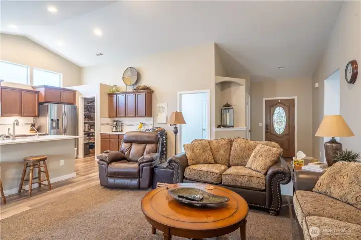 Discover this updated and move-in-ready Pacific floor plan, offering over 1,800 square feet of comfortable living space. The thoughtfully designed single-story layout provides 3 bedrooms, 2 full baths, and a private den or home office. The interior has been refreshed with new flooring and fresh paint, complemented by vaulted ceilings that create an open and airy feel. Step outside to a covered patio in your fully fenced yard, or utilize the oversized, fully finished garage with an 8-foot extension for your hobbies and storage needs. You'll love the convenient location near all the conveniences in town.